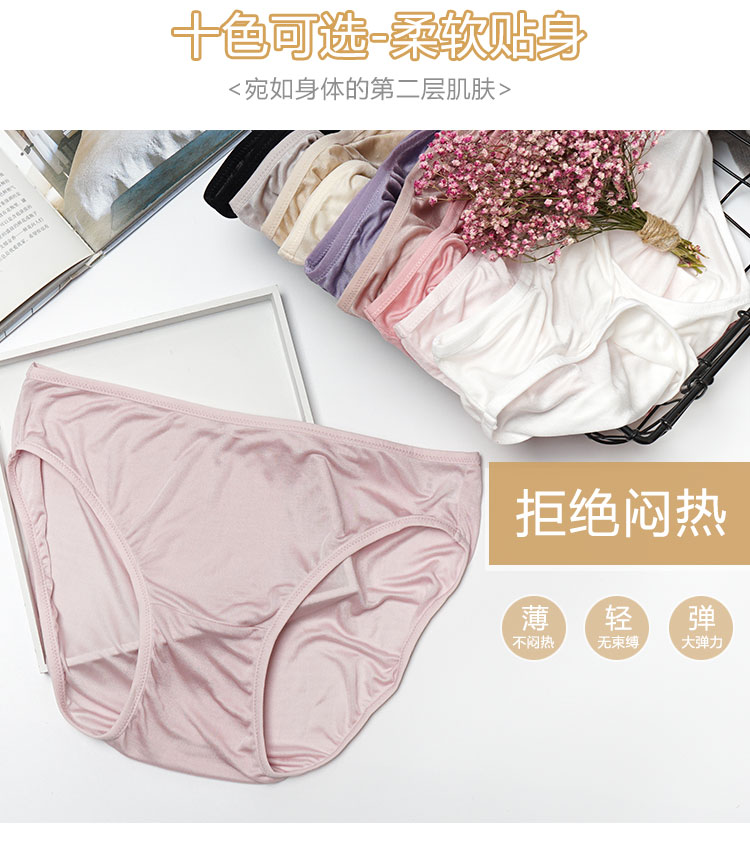 100%桑蠶絲真絲內褲女夏季超薄女士無痕中腰包臀大碼少女三角底褲