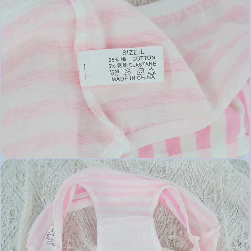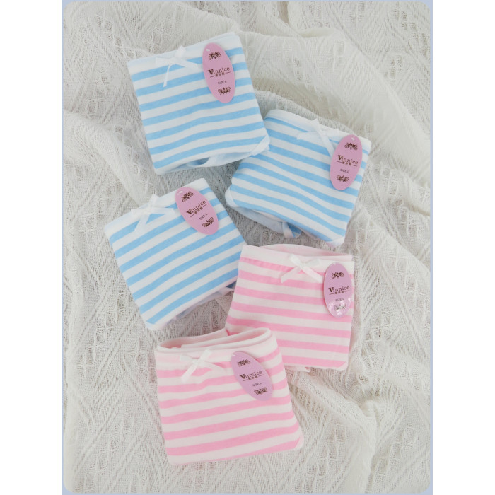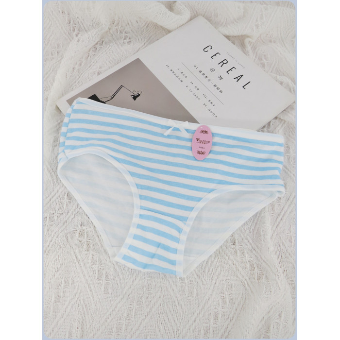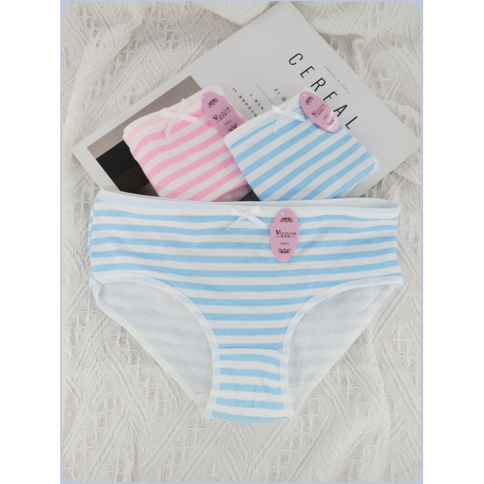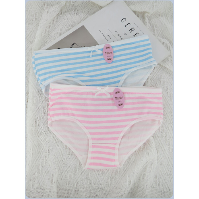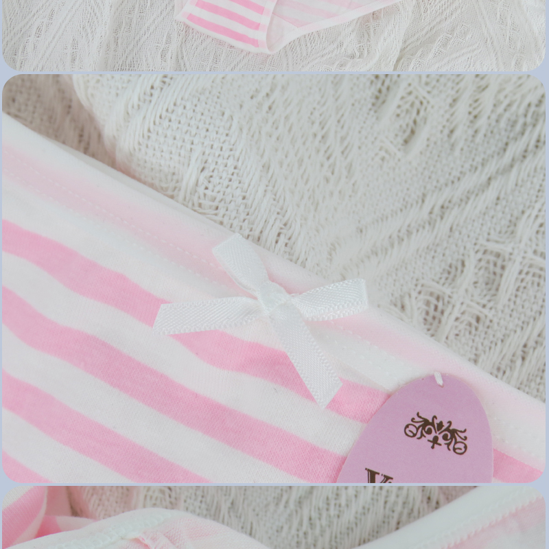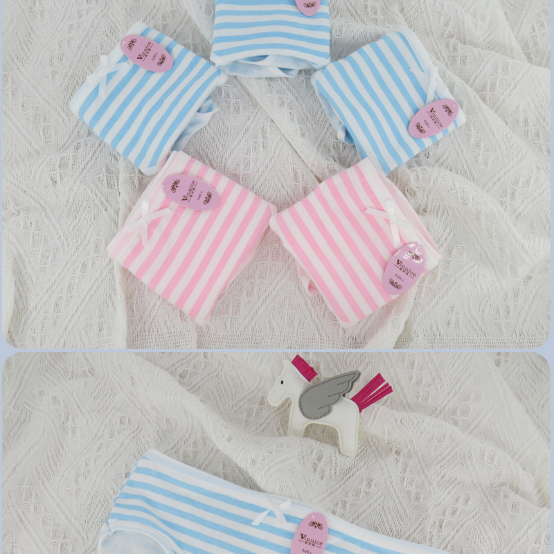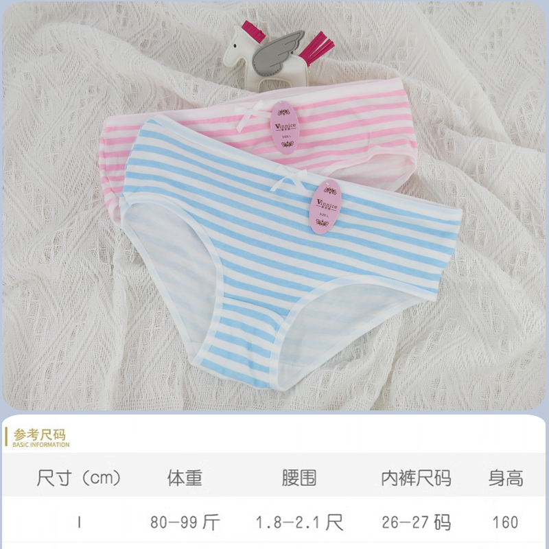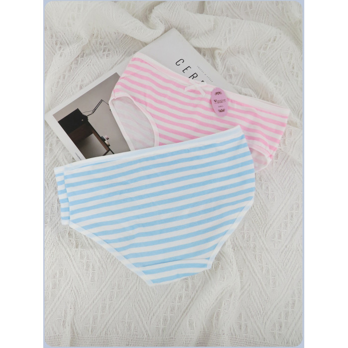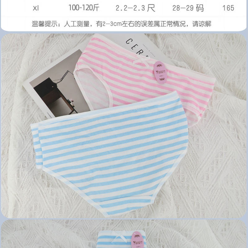二次元藍白條紋純棉內褲女士蝴蝶結中腰透氣粉白條紋日系少女胖次