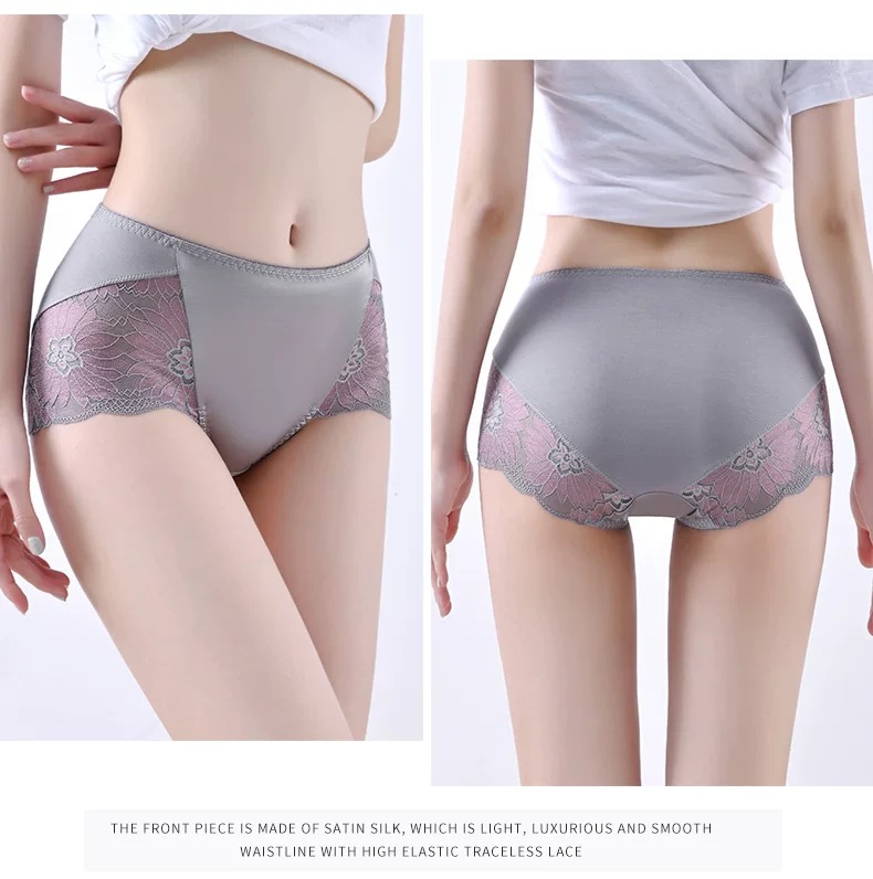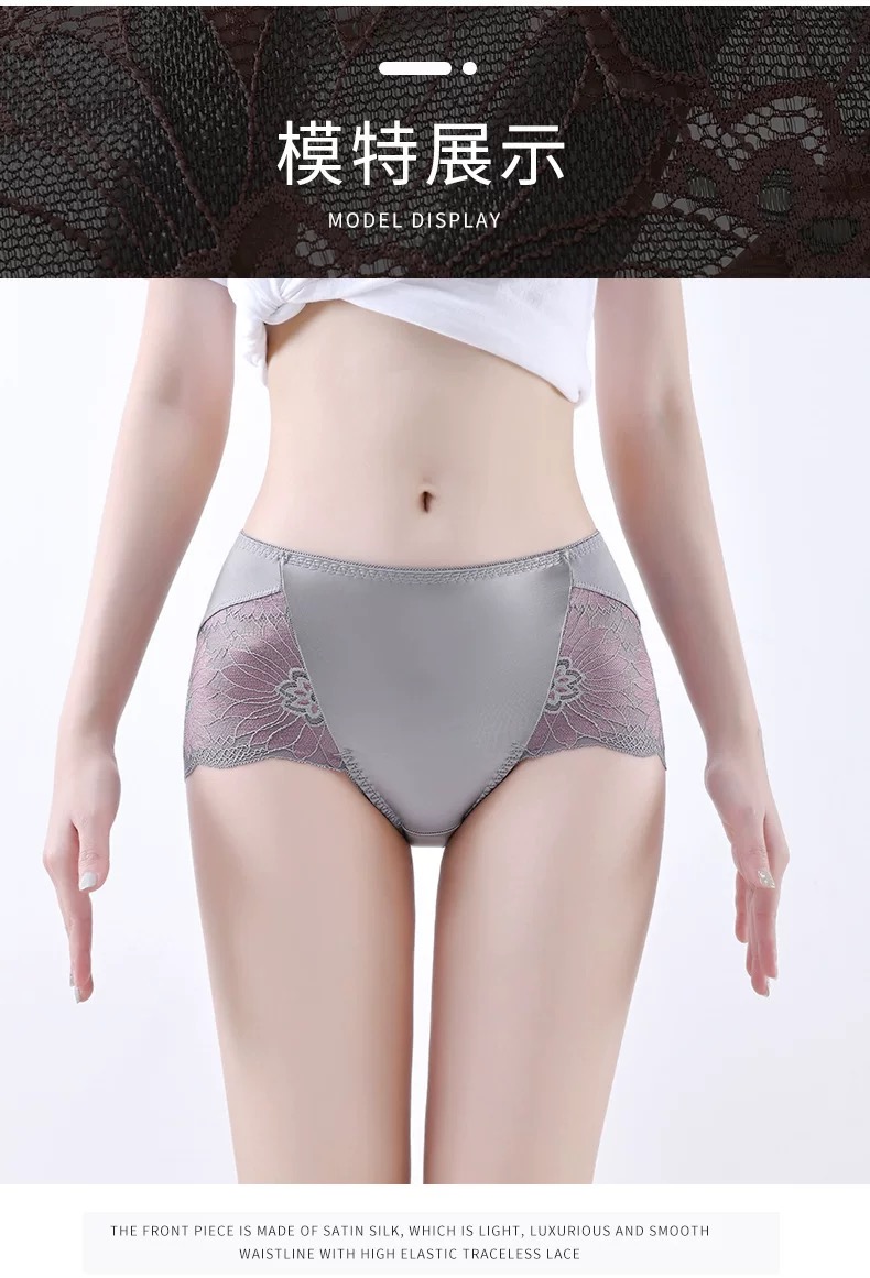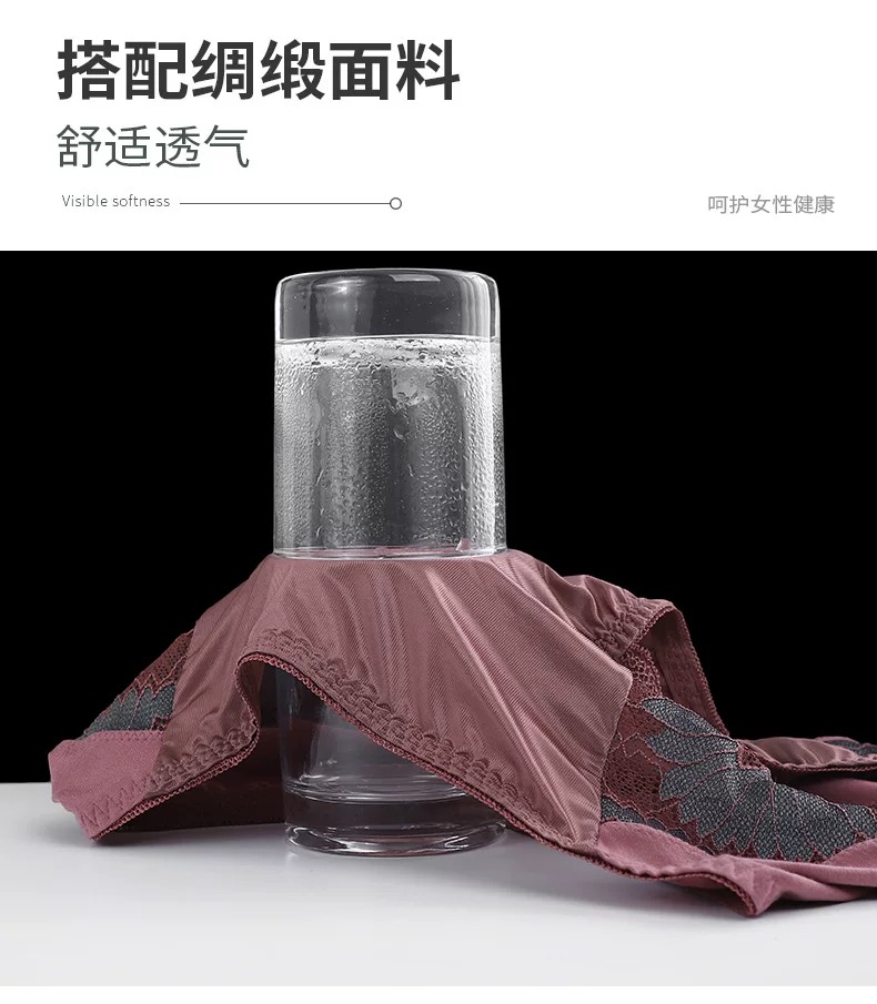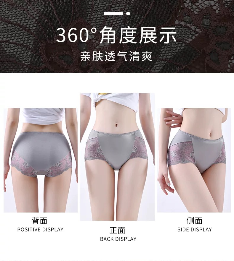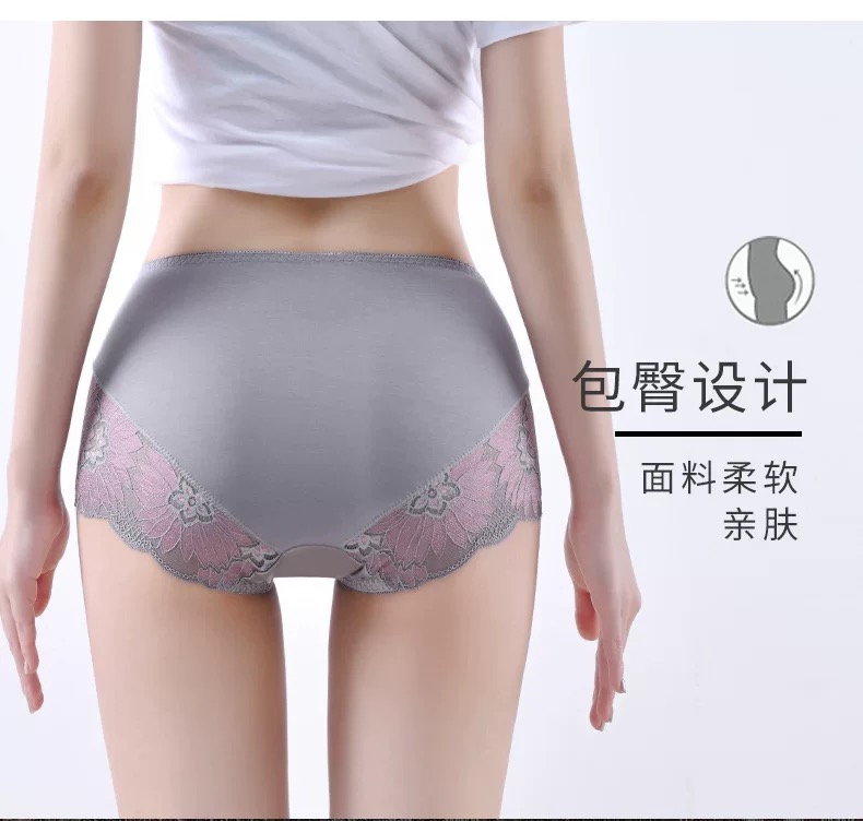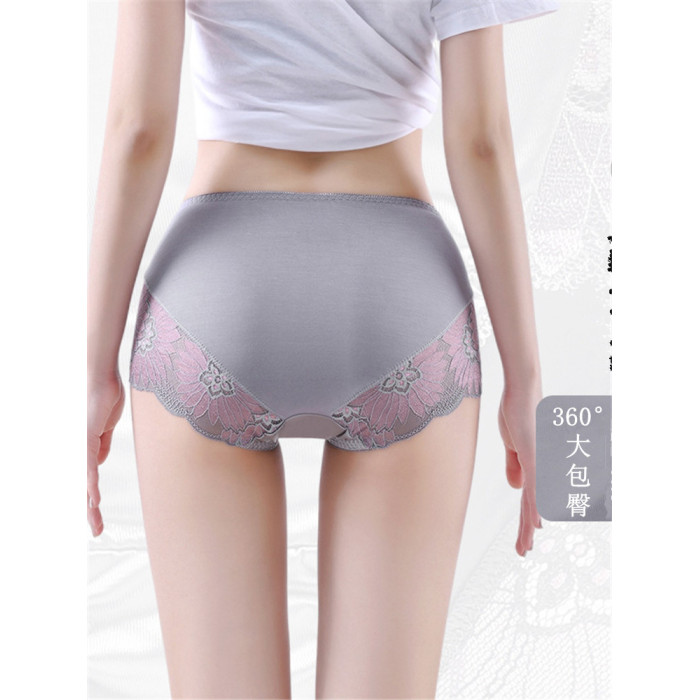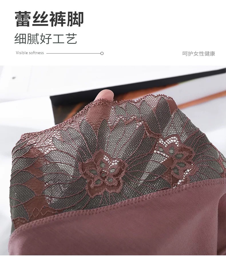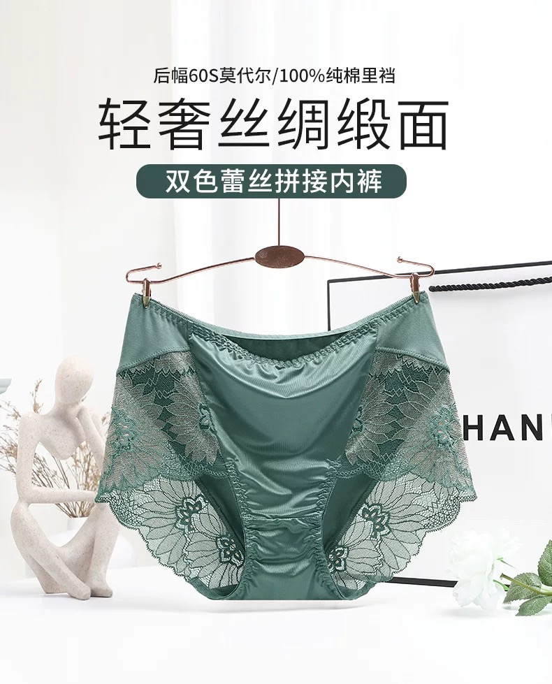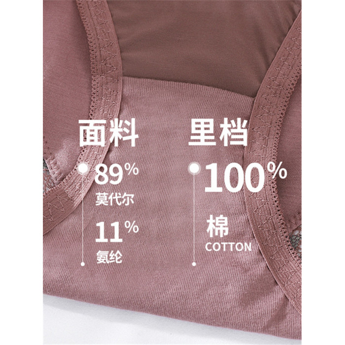 4條內褲女性感蕾絲中高腰無痕收腹包臀莫代爾透氣大碼胖mm純棉襠