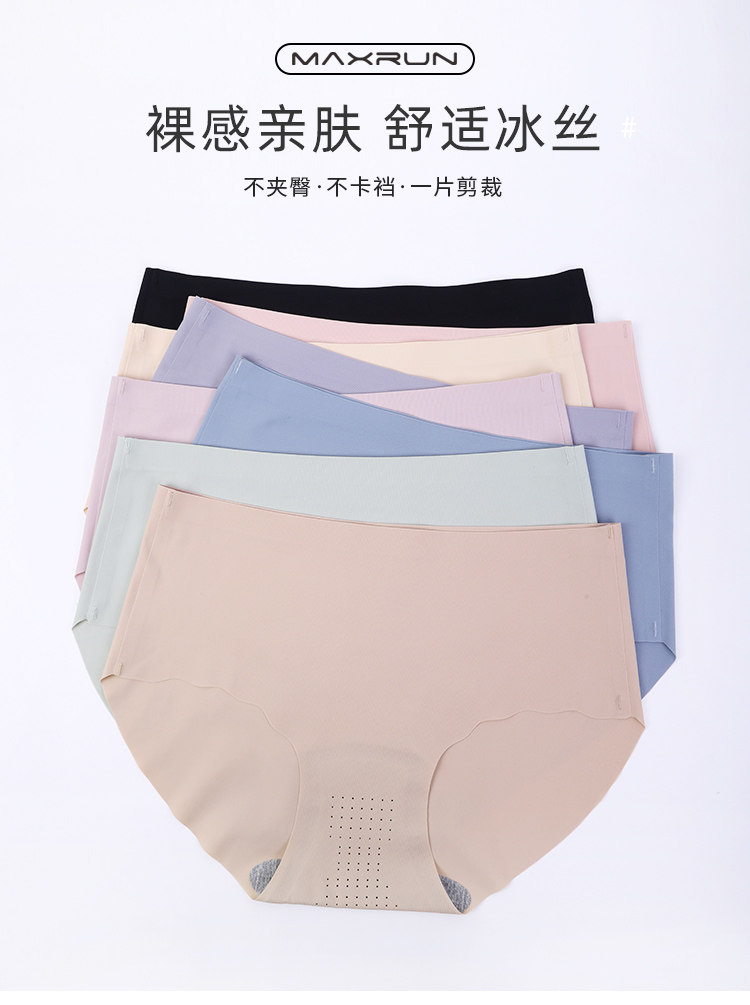 maxrun冰絲無痕運動內褲透氣速乾一片式隱形夏薄健身瑜珈三角褲女