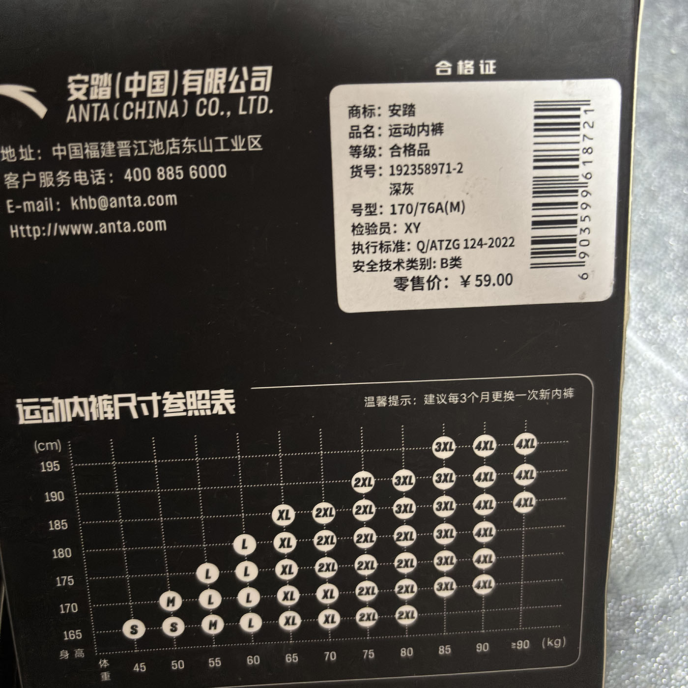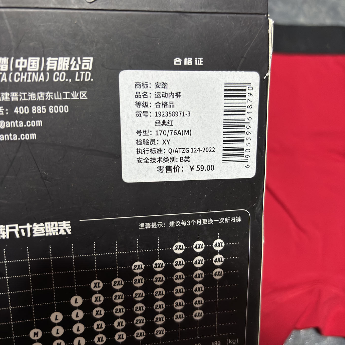 安踏男子運動內褲透氣舒適親膚抗菌底褲棉質平角四角褲192358971