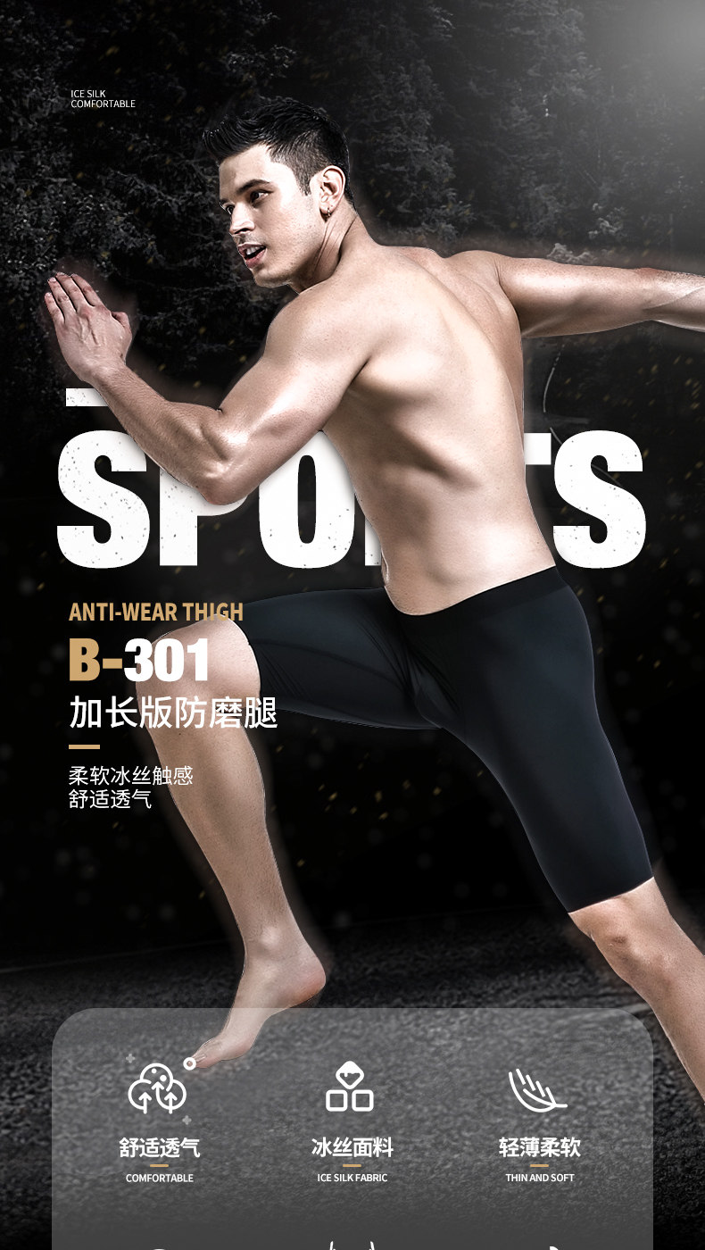 男士運動內褲男夏季冰絲速乾加長防磨腿加大加肥寬鬆四角短褲衩頭