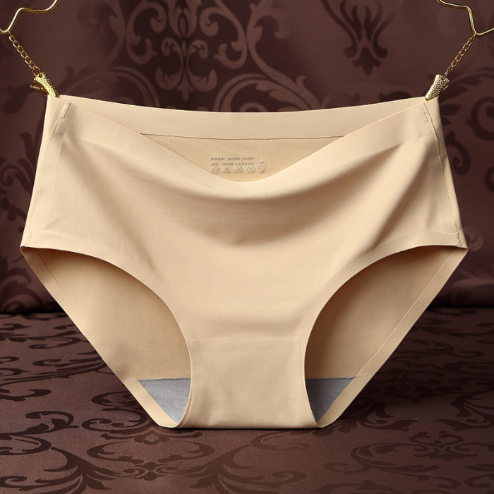女士冰絲柔滑一片式無痕運動內褲中腰貼身短褲大碼無縫透氣舒適薄