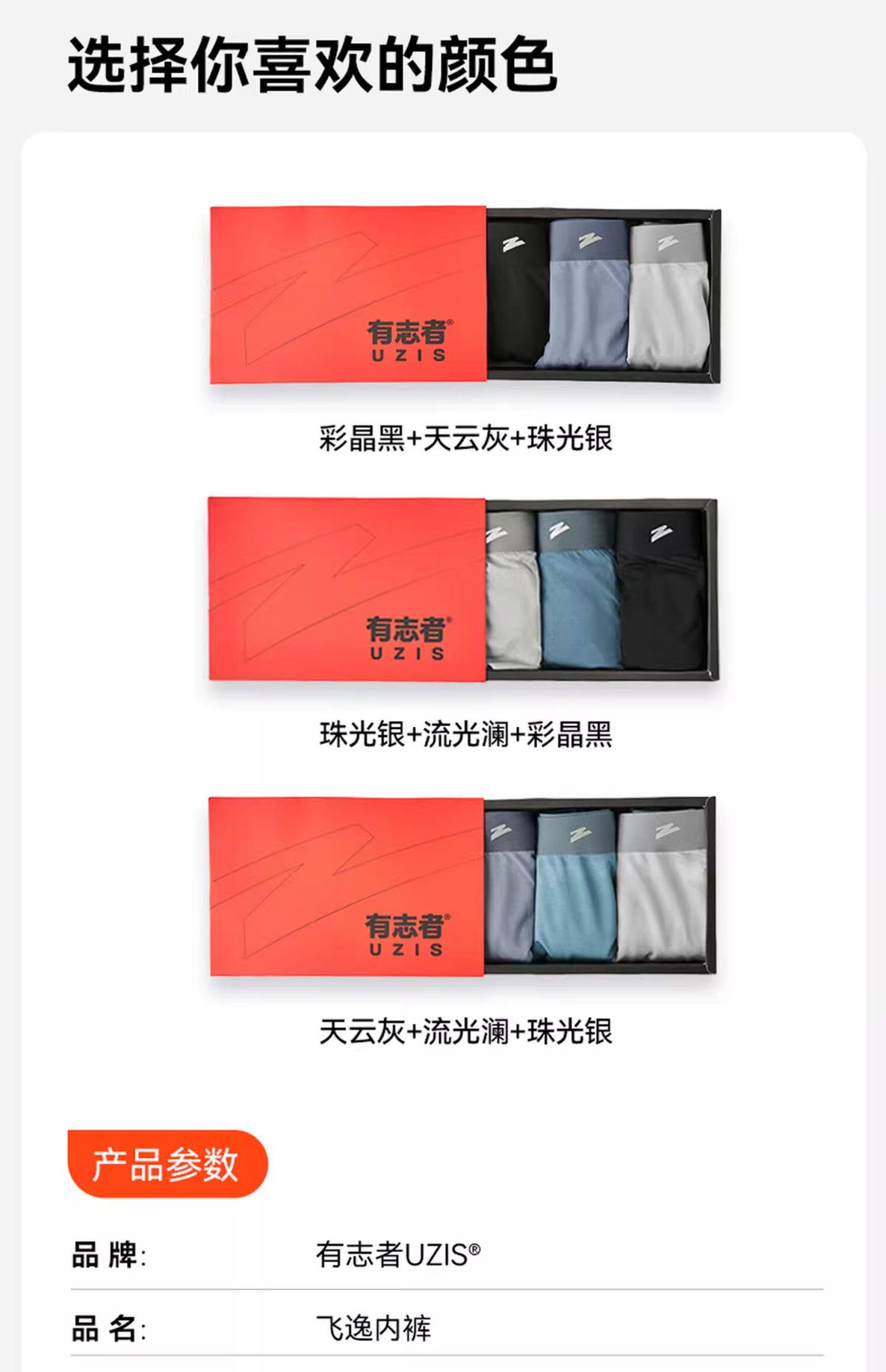 有志者UZIS運動內褲男士抑菌透氣速乾四角褲無痕平角褲飛逸三條裝