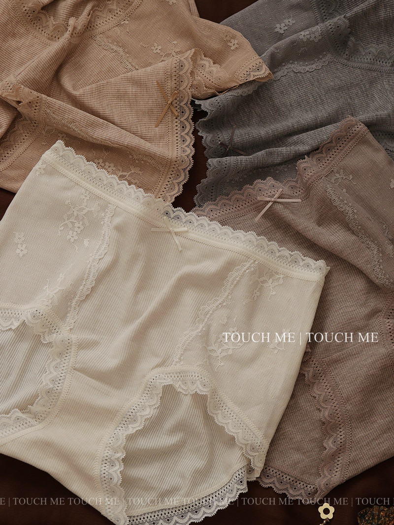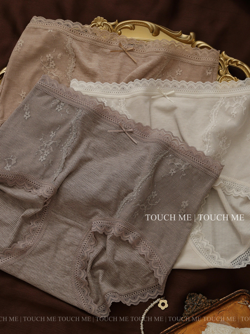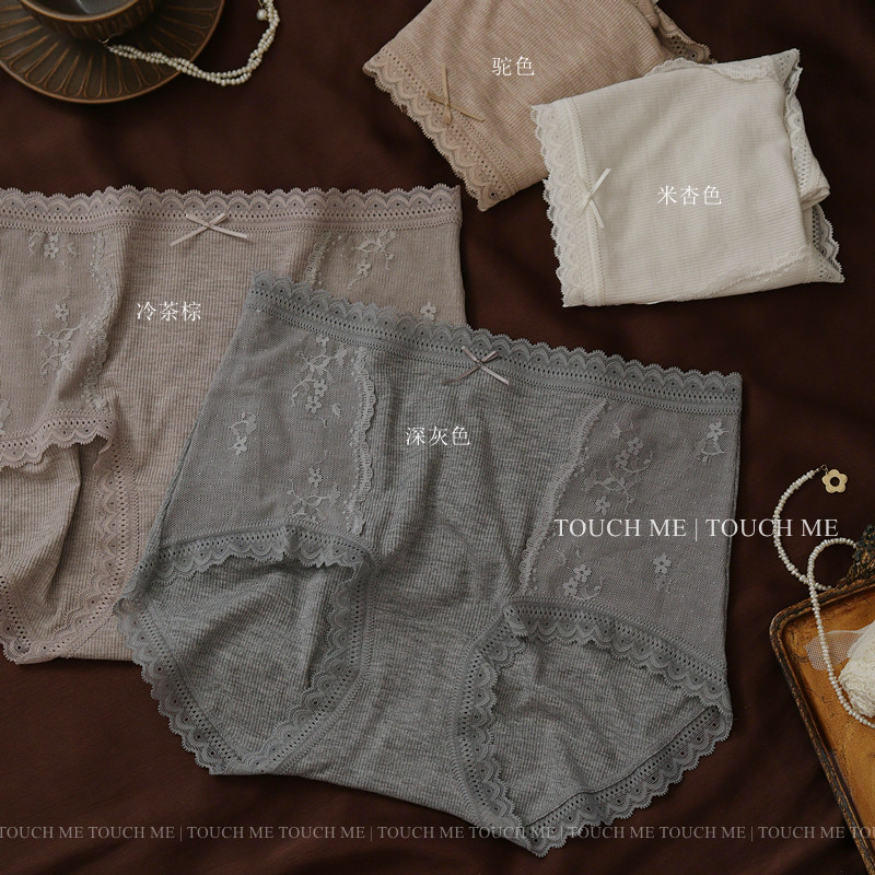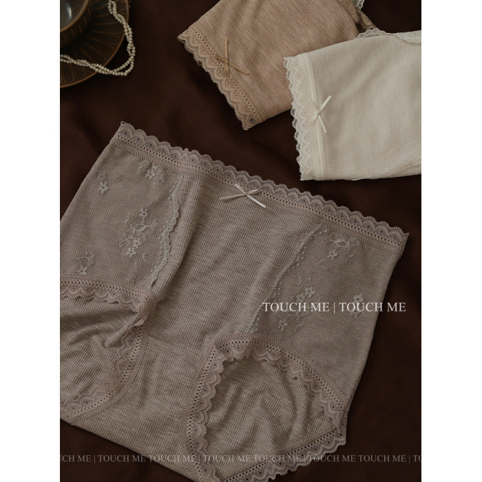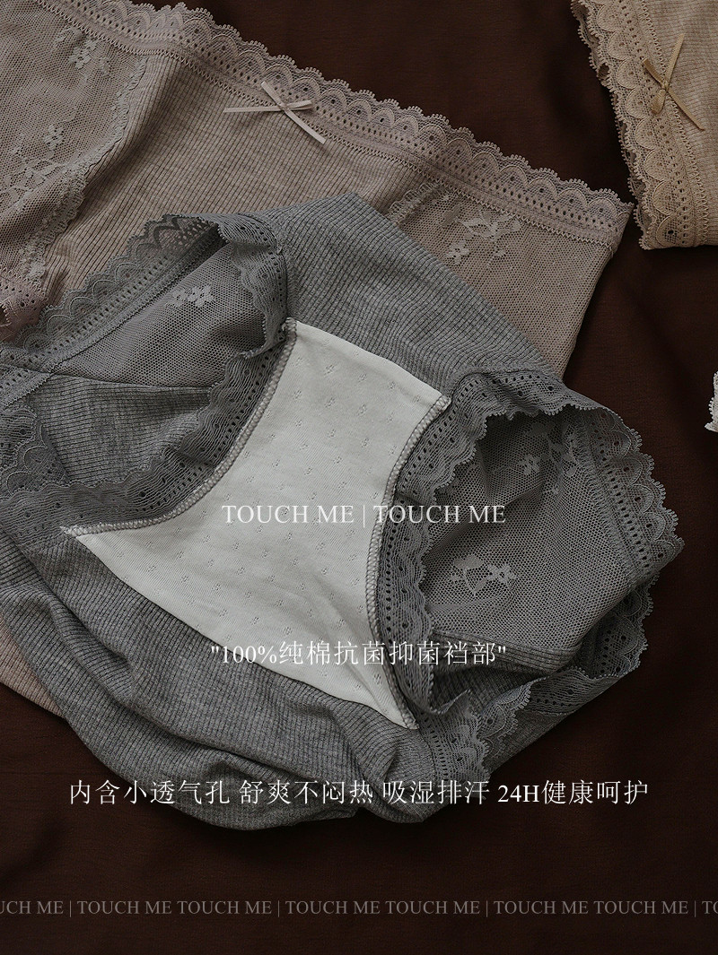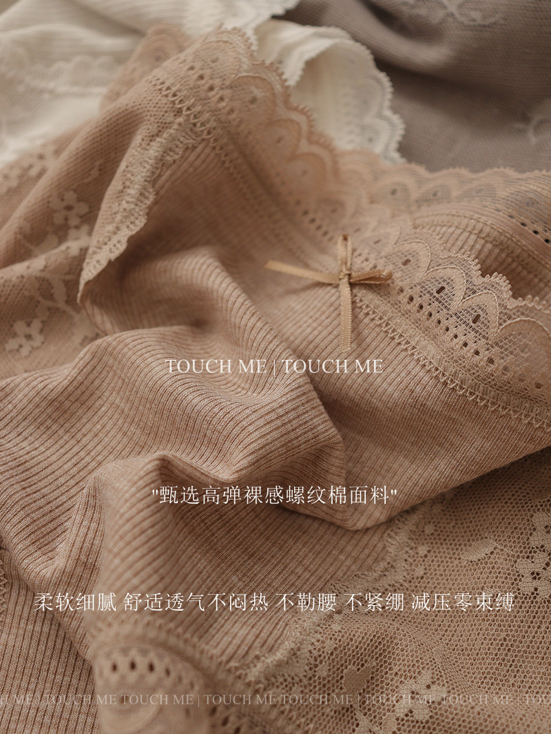 touchme法式蕾絲邊莫代爾中高腰收腹內褲女透氣純棉抑菌襠包臀3條