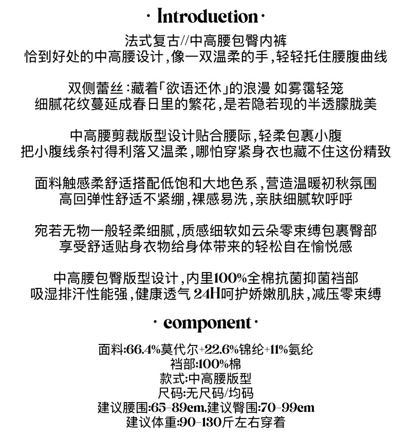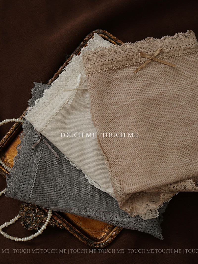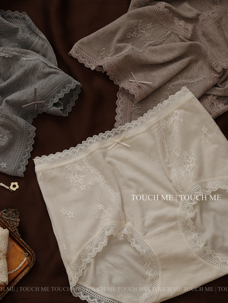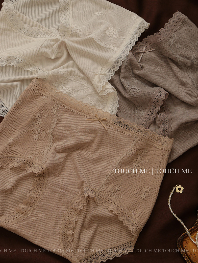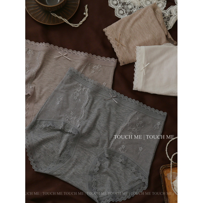 touchme法式蕾絲邊莫代爾中高腰收腹內褲女透氣純棉抑菌襠包臀3條