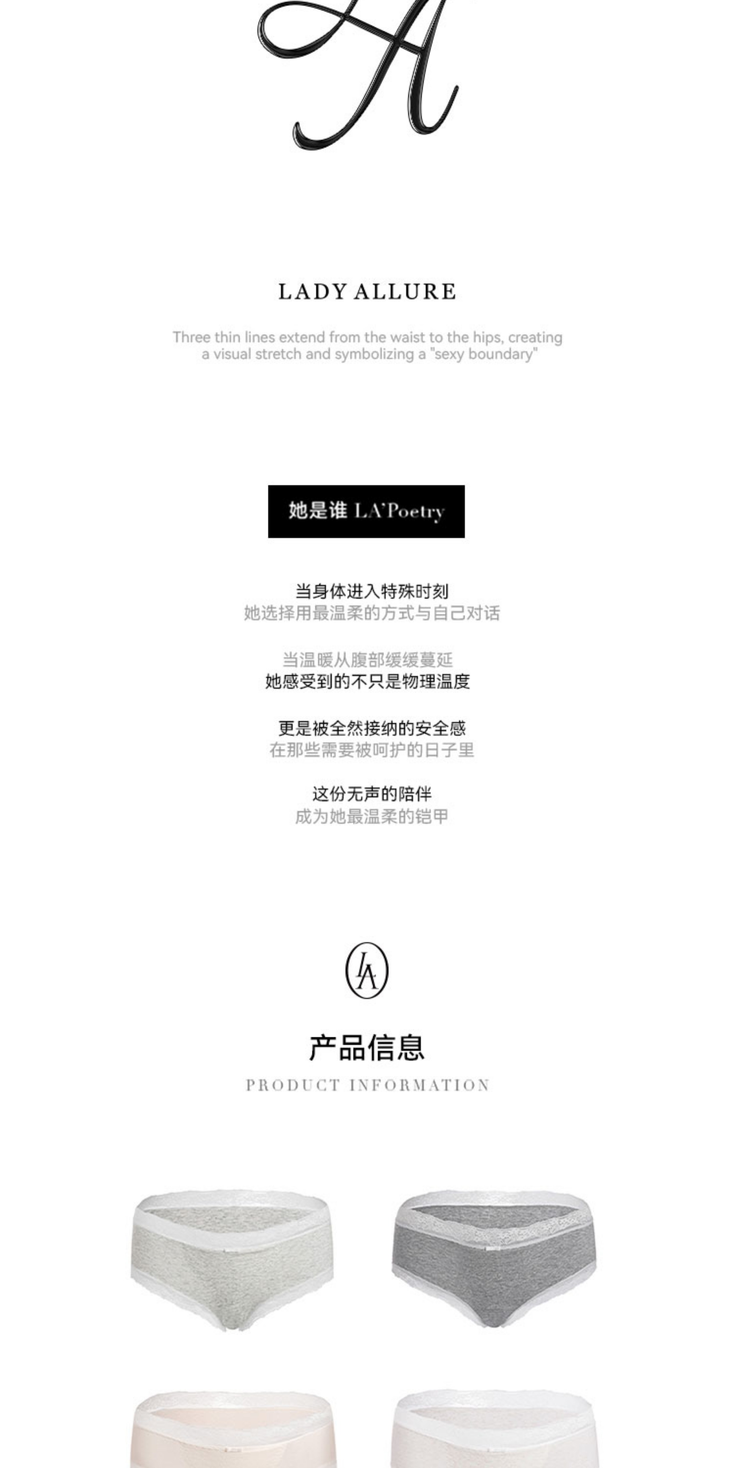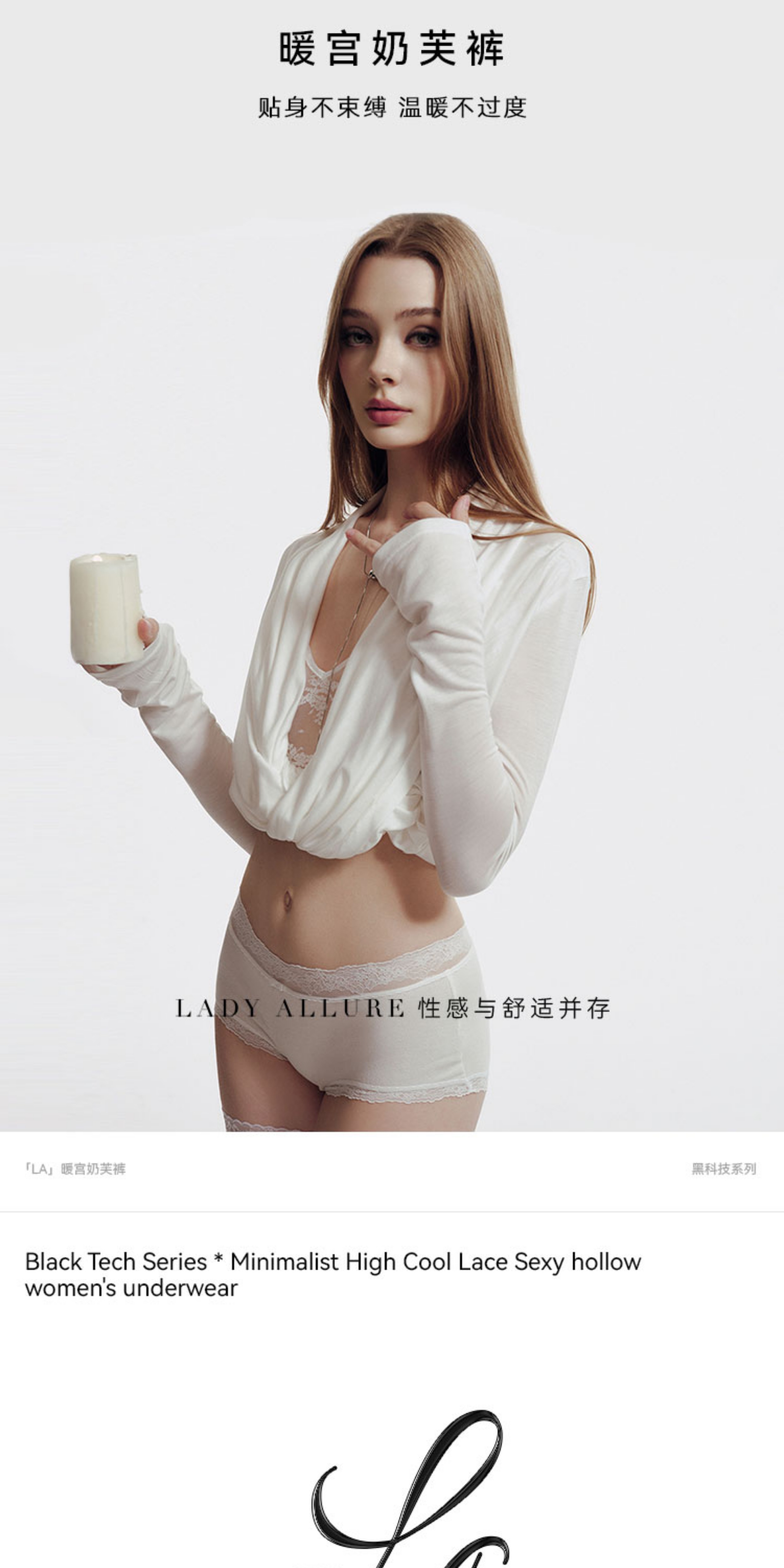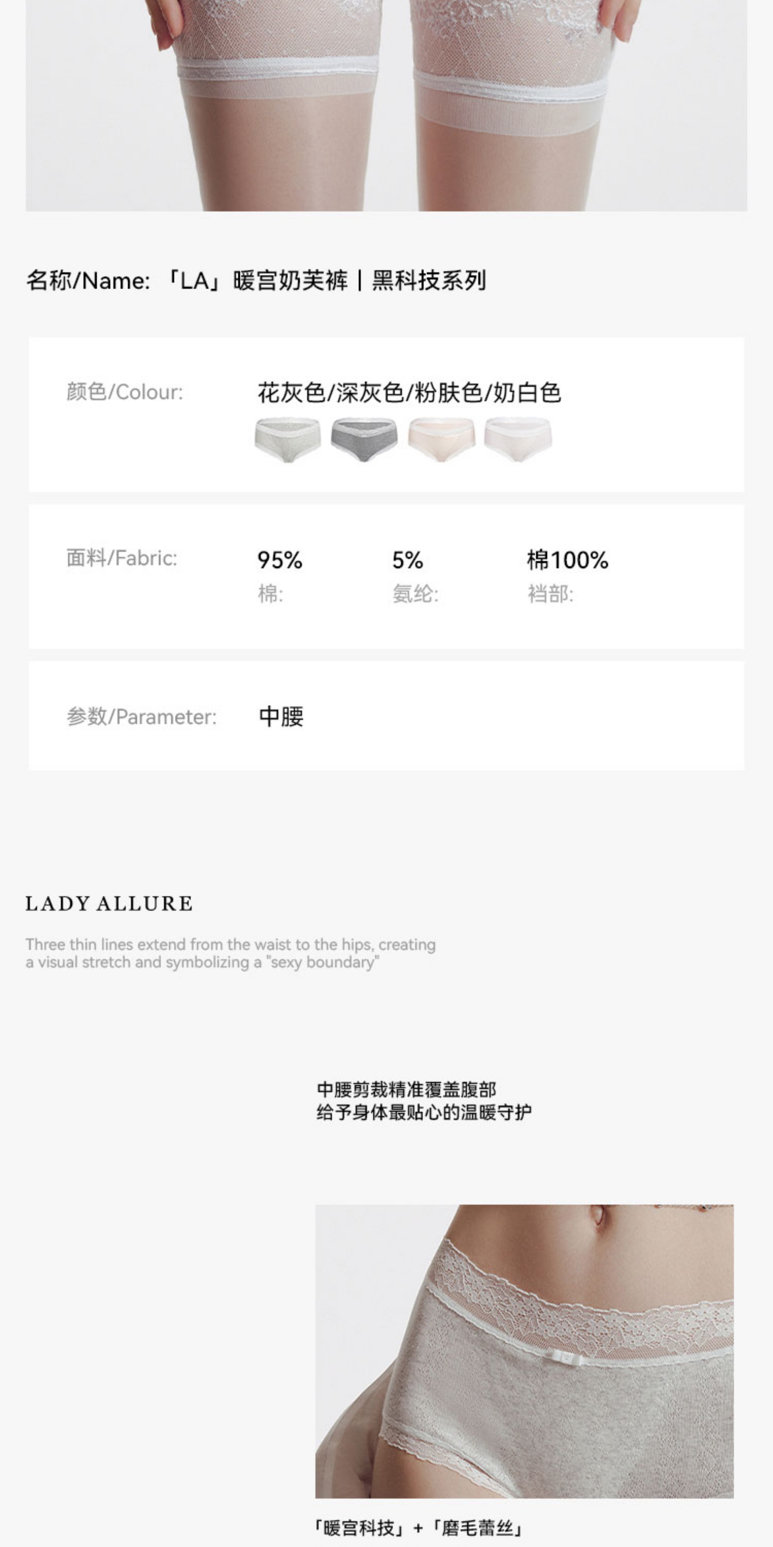 「LA」暖宮奶芙褲|黑科技系列*舒適棉中腰軟糯蕾絲磨毛三角內褲