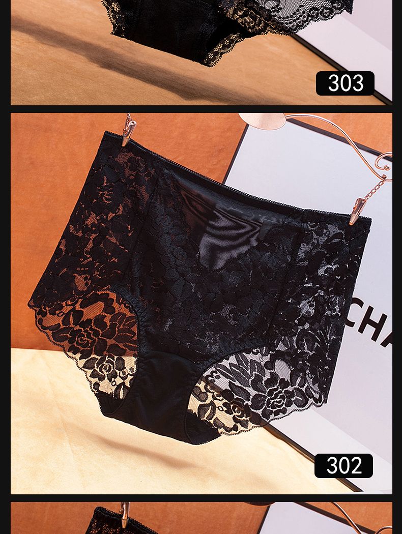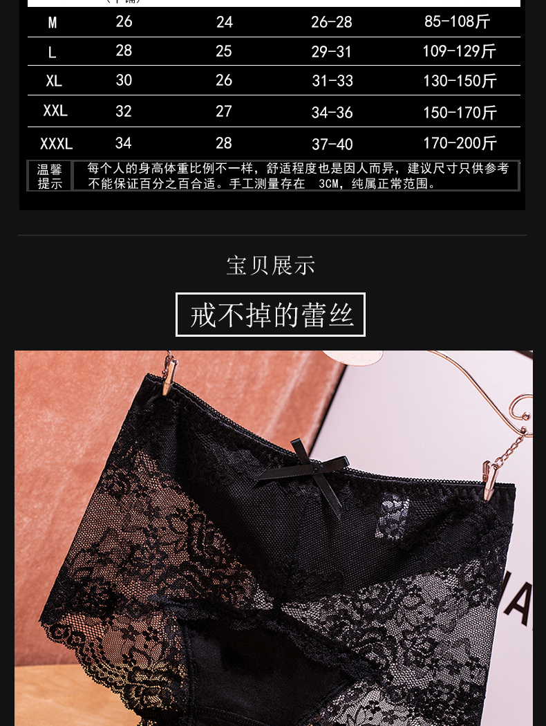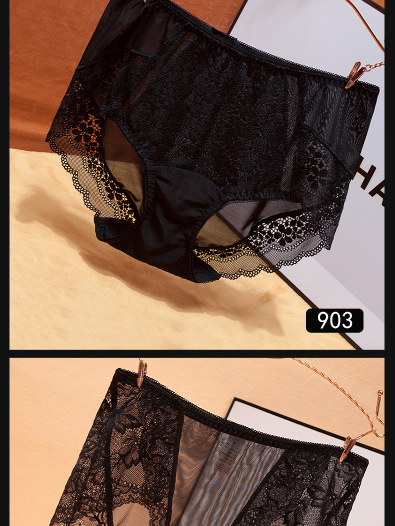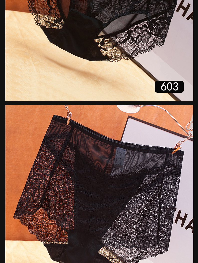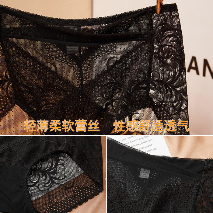 黑蕾絲內褲女性感透明無痕純棉抗菌高腰大碼胖mm三角2025新款春夏