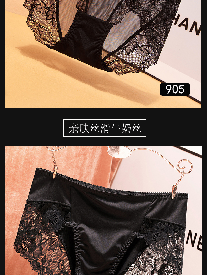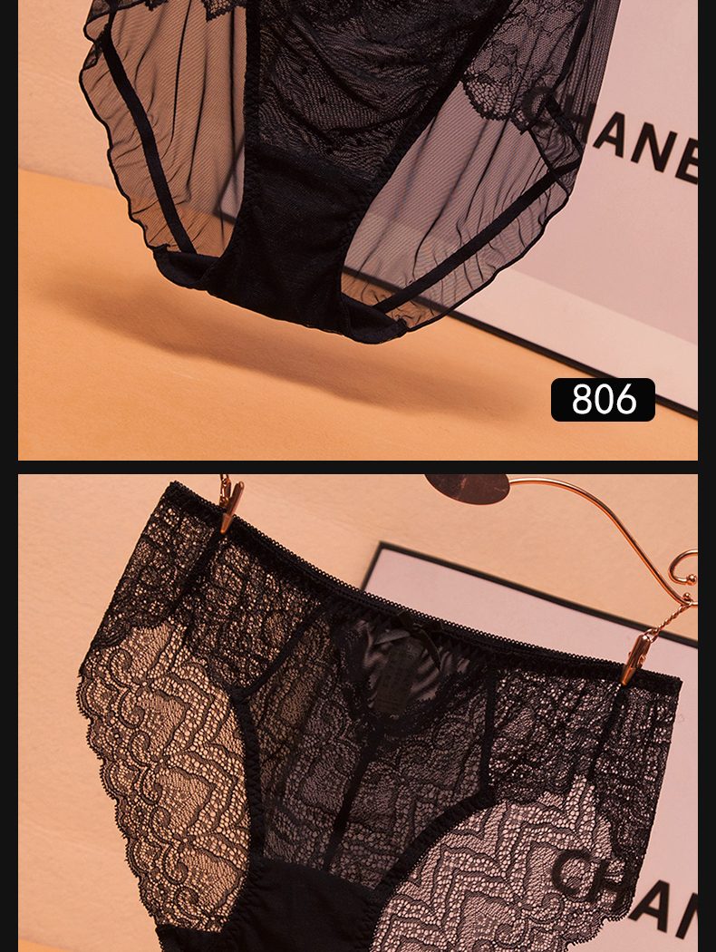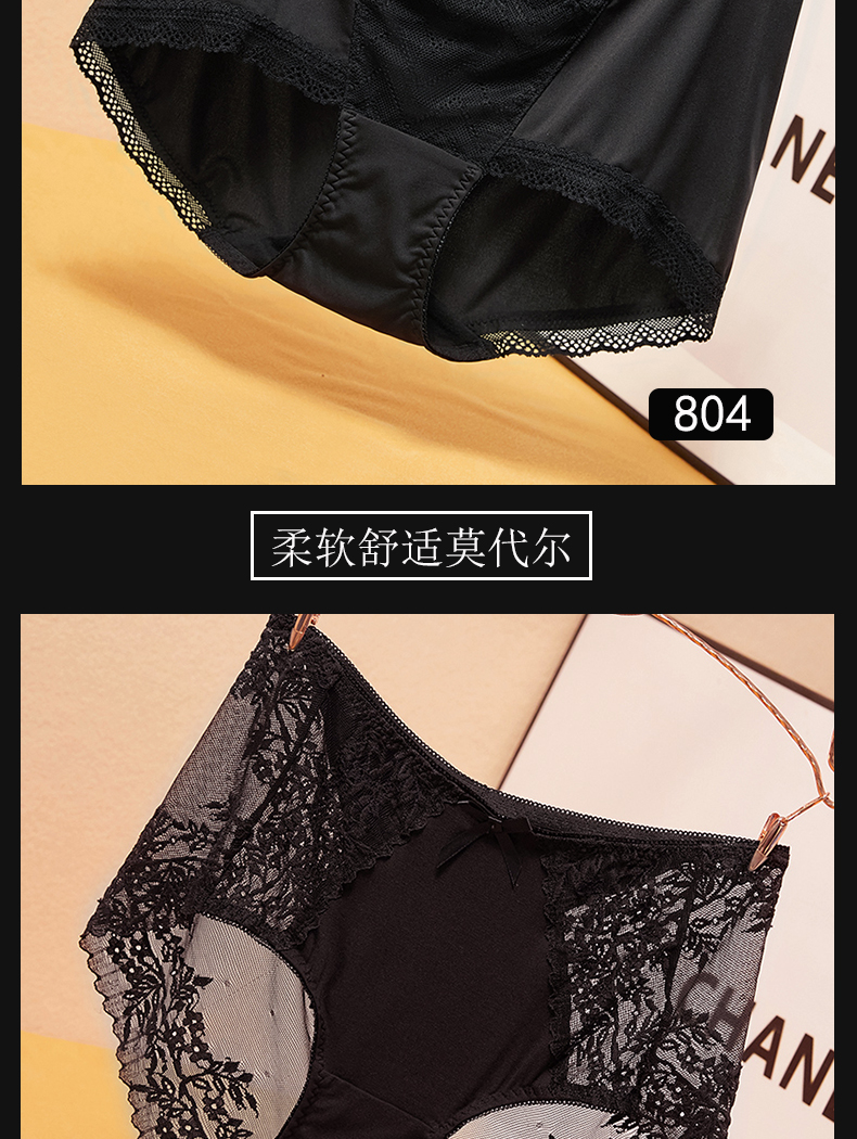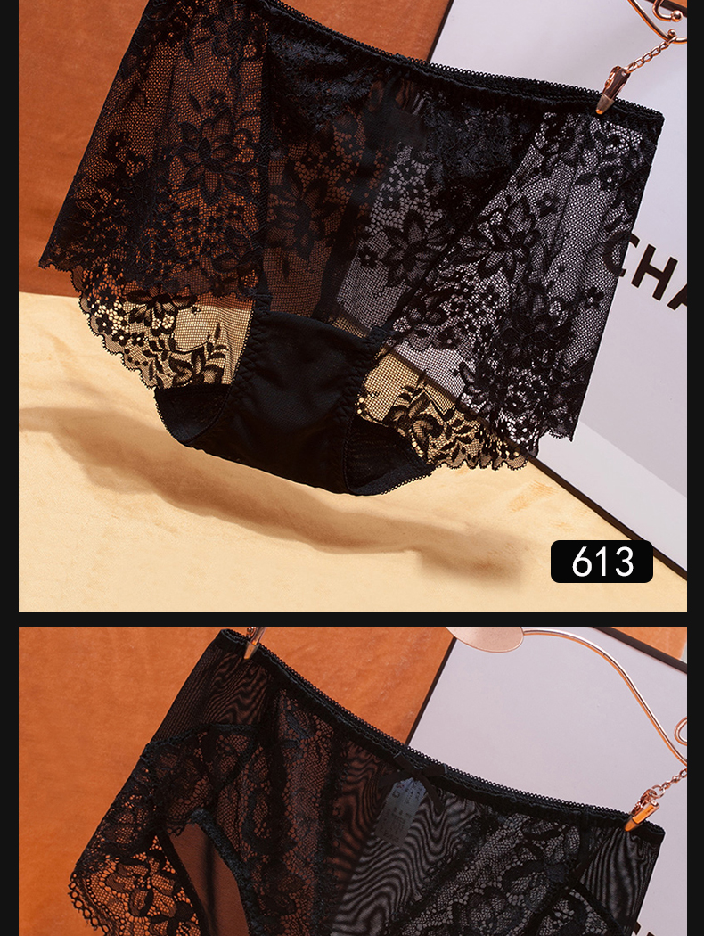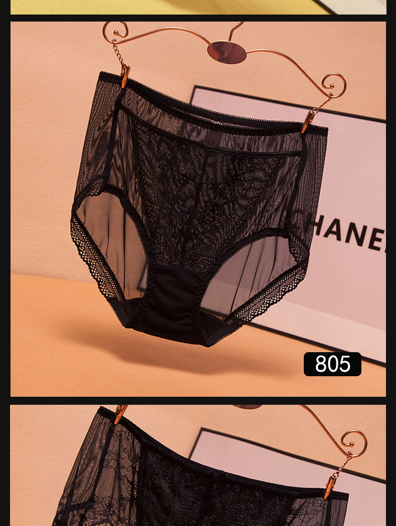 黑蕾絲內褲女性感透明無痕純棉抗菌高腰大碼胖mm三角2025新款春夏