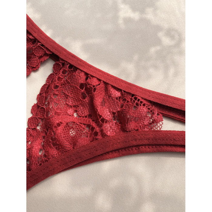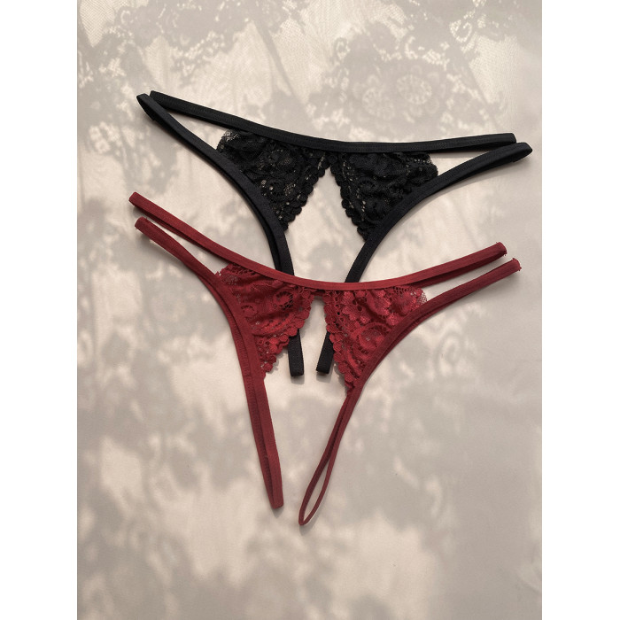 法式蕾絲花邊綁帶開襠內褲本命年紅色性感誘惑丁字褲火辣T褲全透