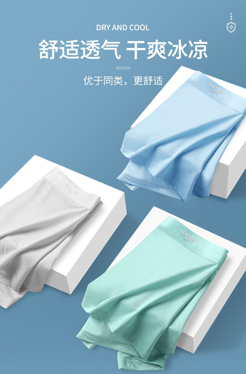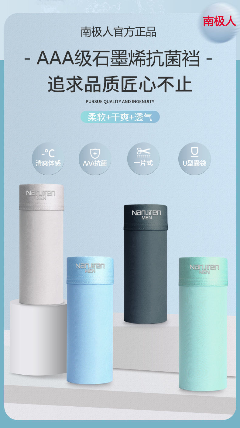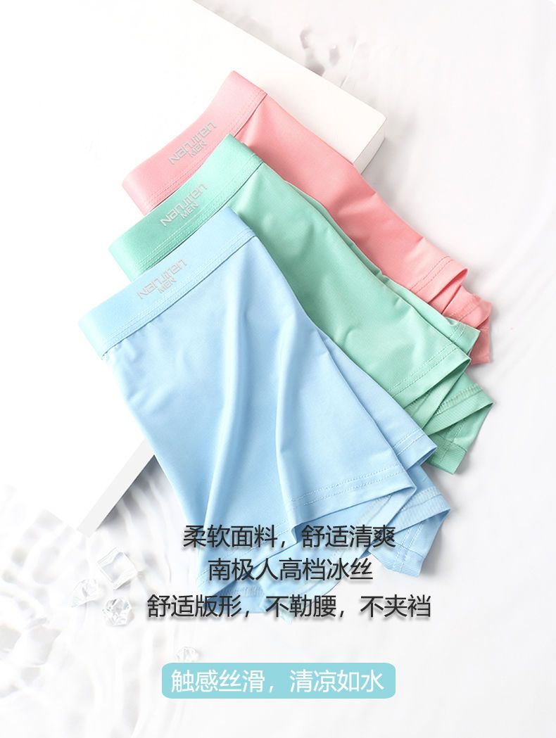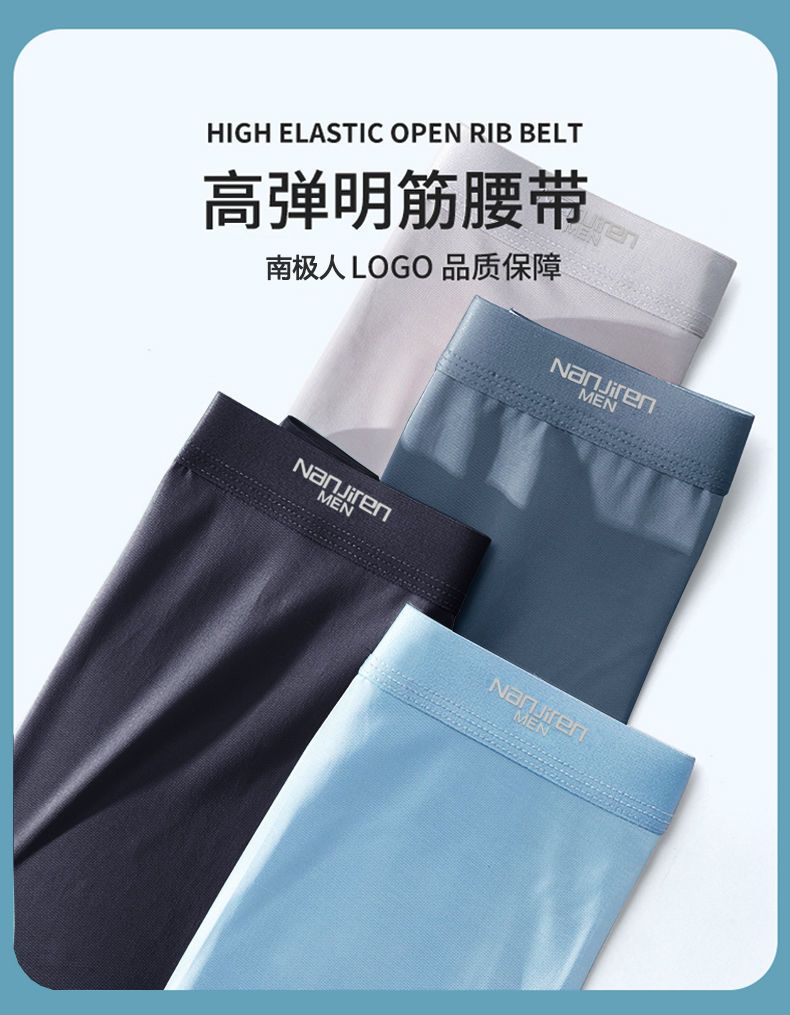 南極人男士內褲男冰絲石墨烯抗菌夏季薄平四角短內褲頭衩成人學生