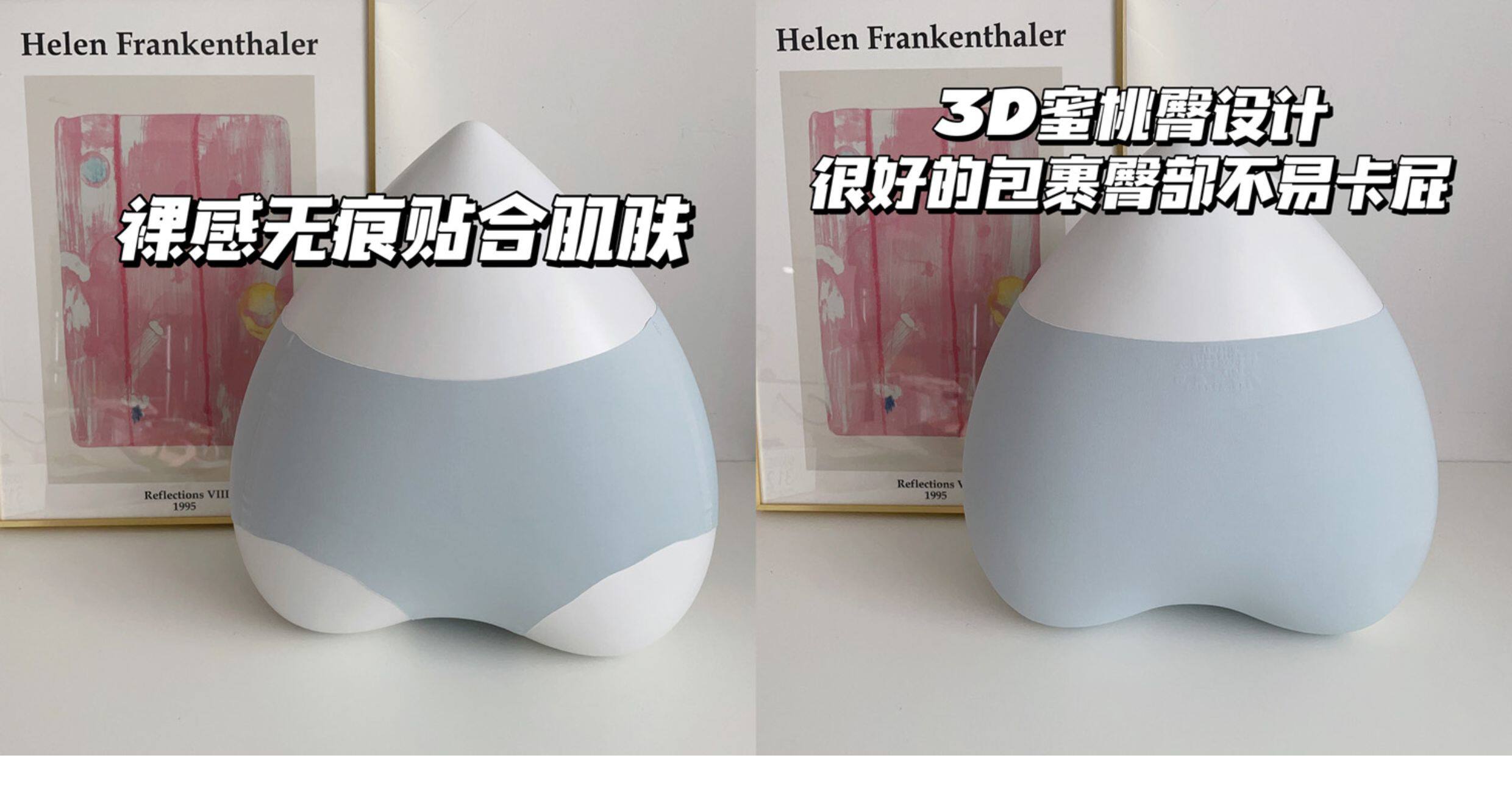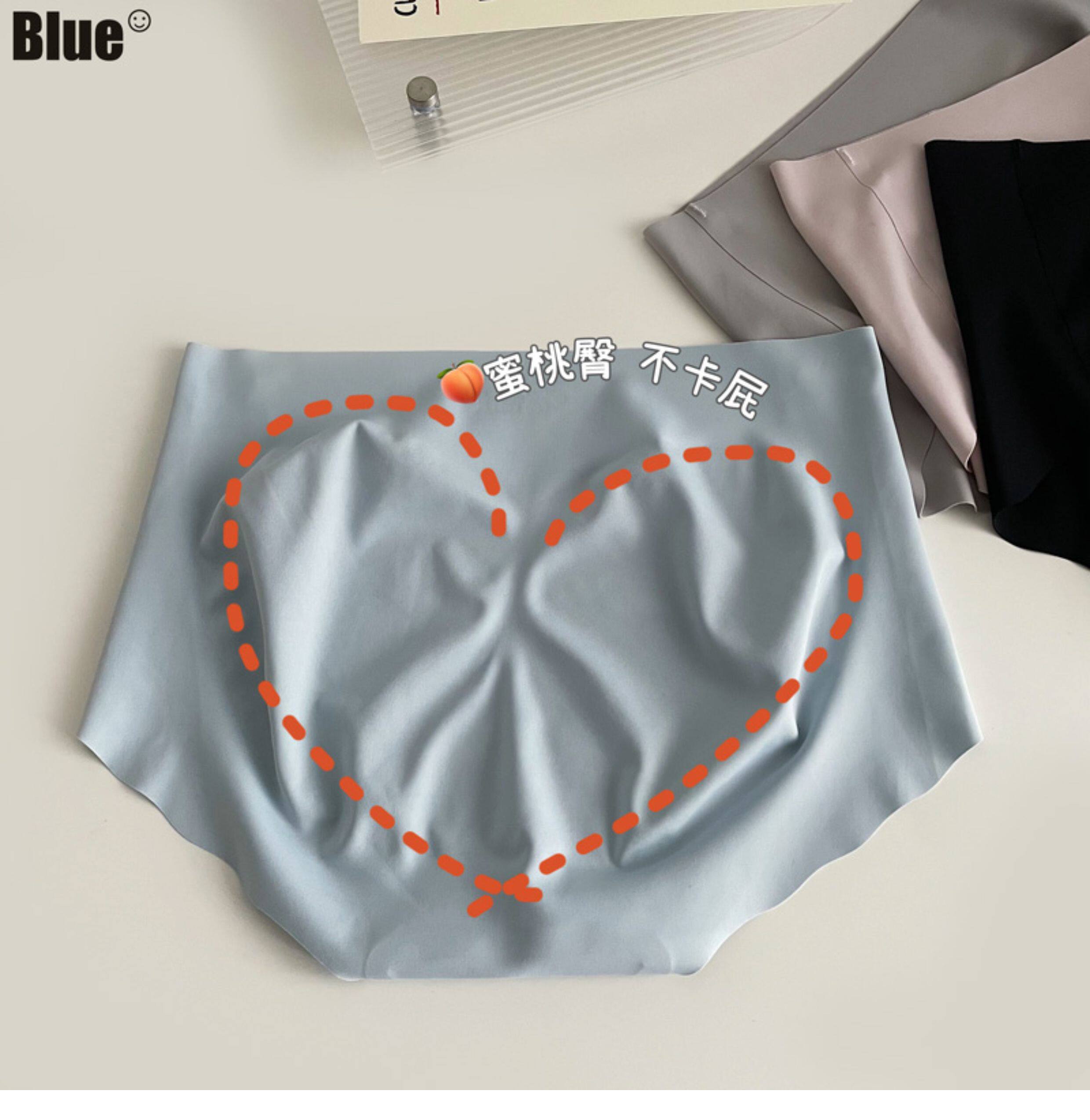 可健身穿冰絲無痕內褲女一片式3D蜜桃臀不卡屁蠶絲襠中腰三角褲