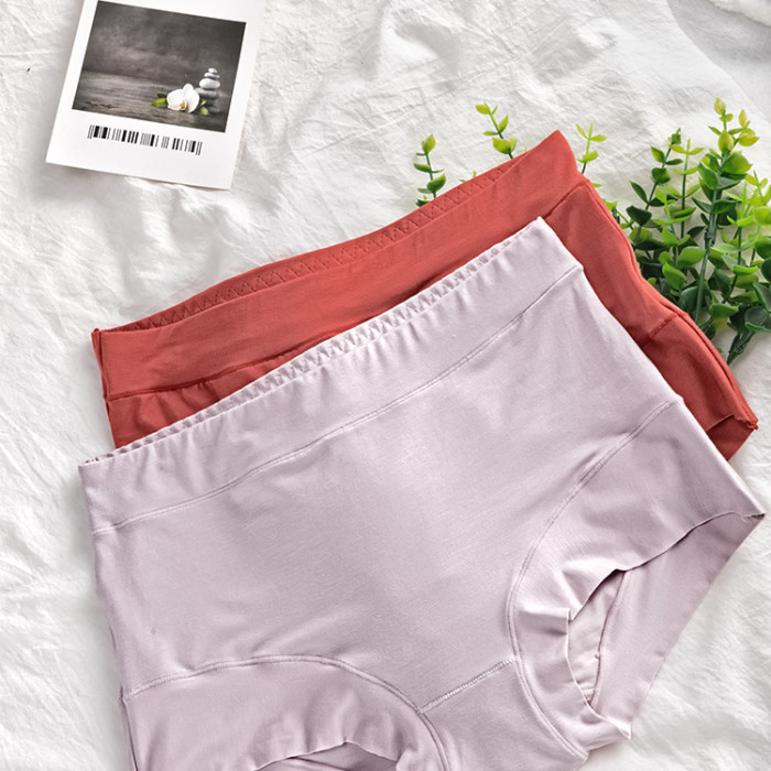 3條裝 60支莫代爾竹纖維高腰純色簡約包臀無痕大碼女士內褲三角褲