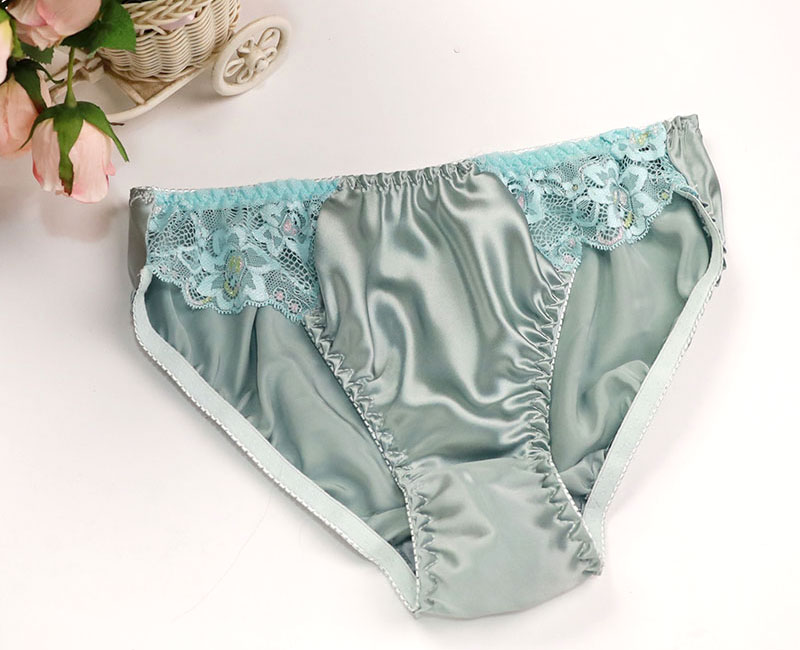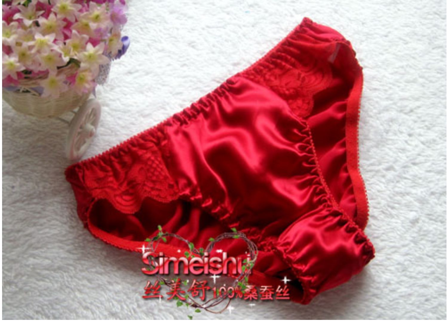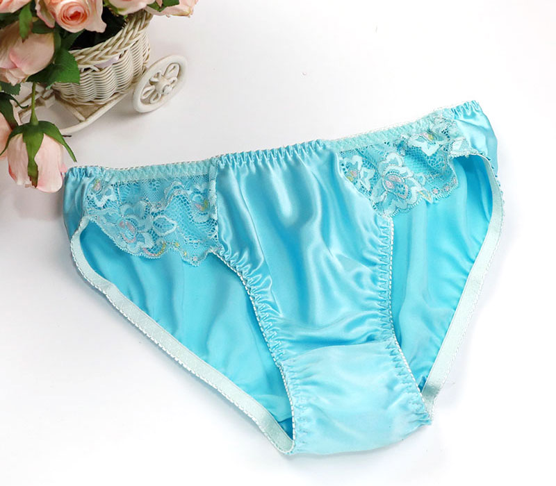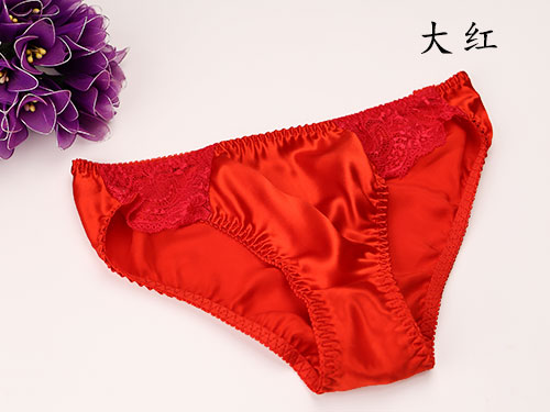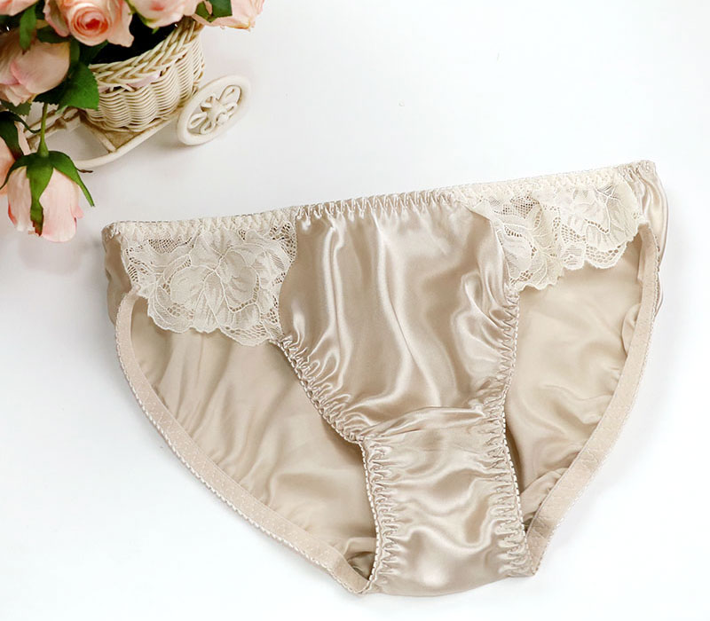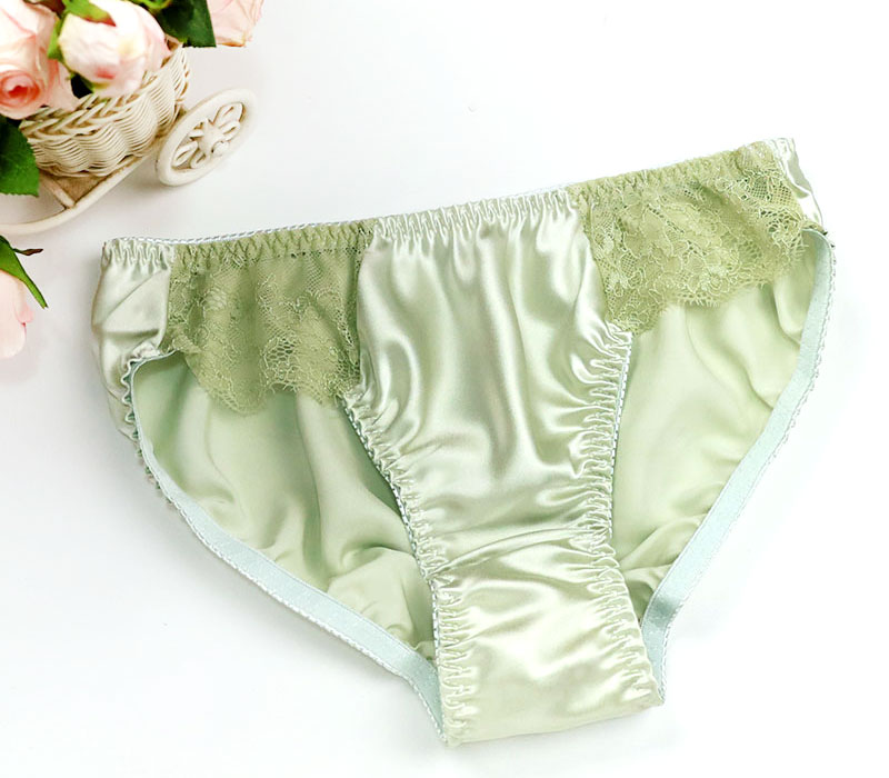 100%桑蠶絲真絲內褲女蠶絲低腰女士蕾絲邊三角褲吸汗透氣