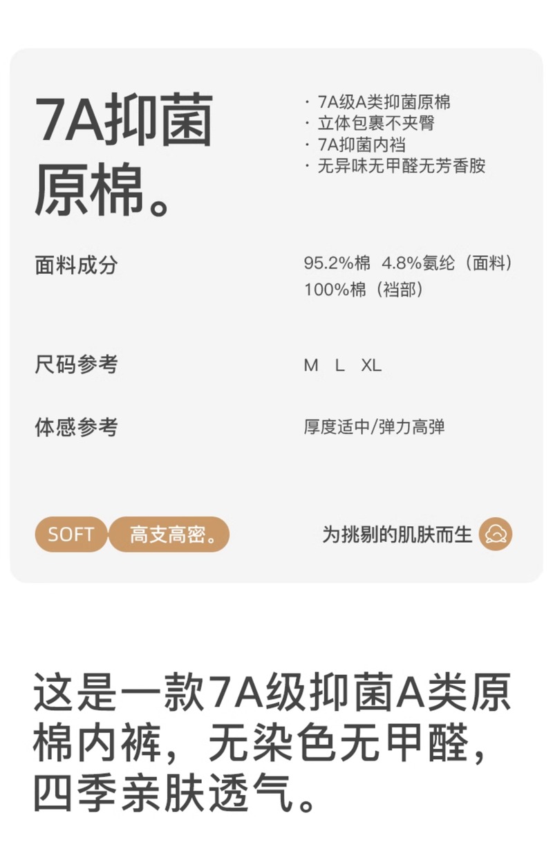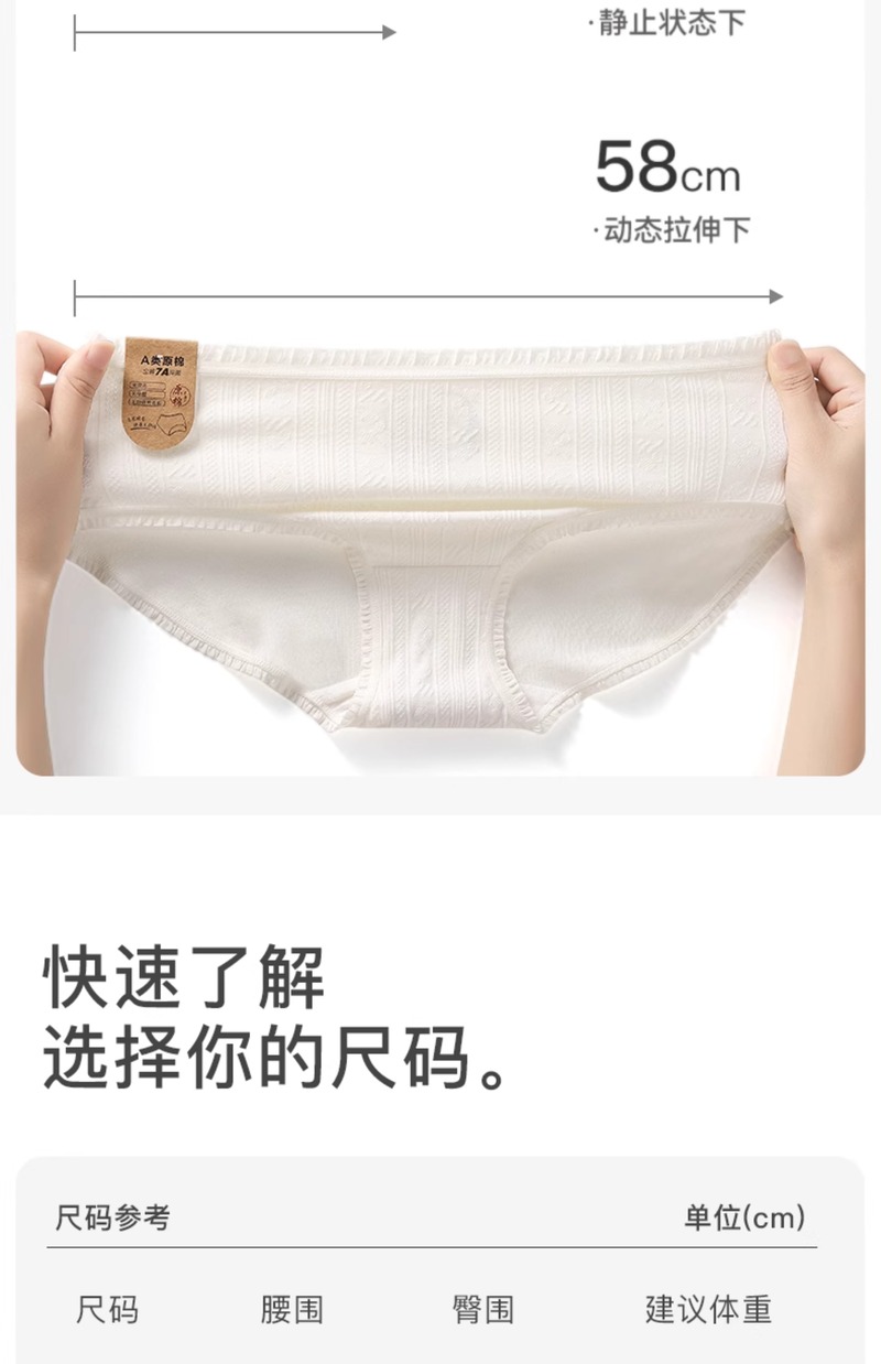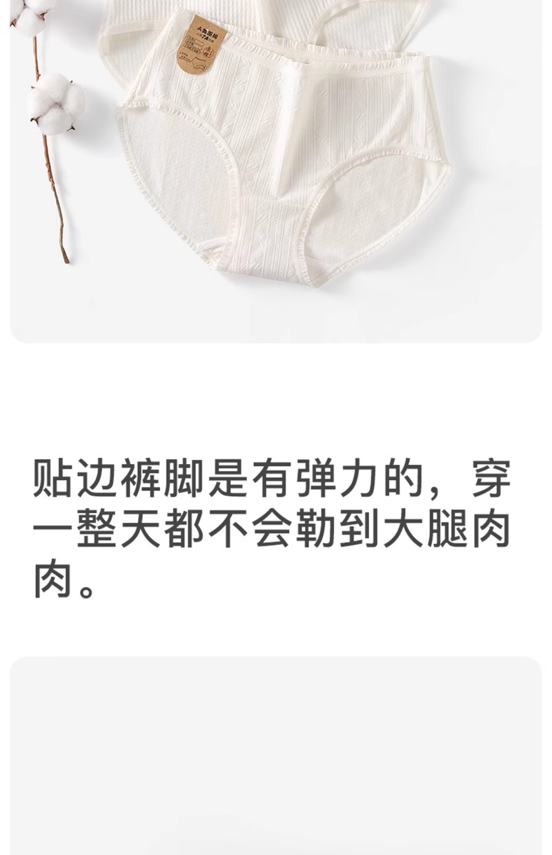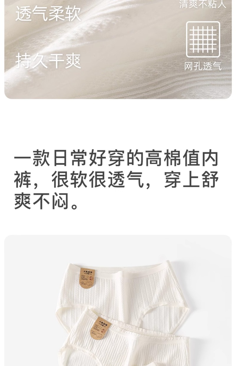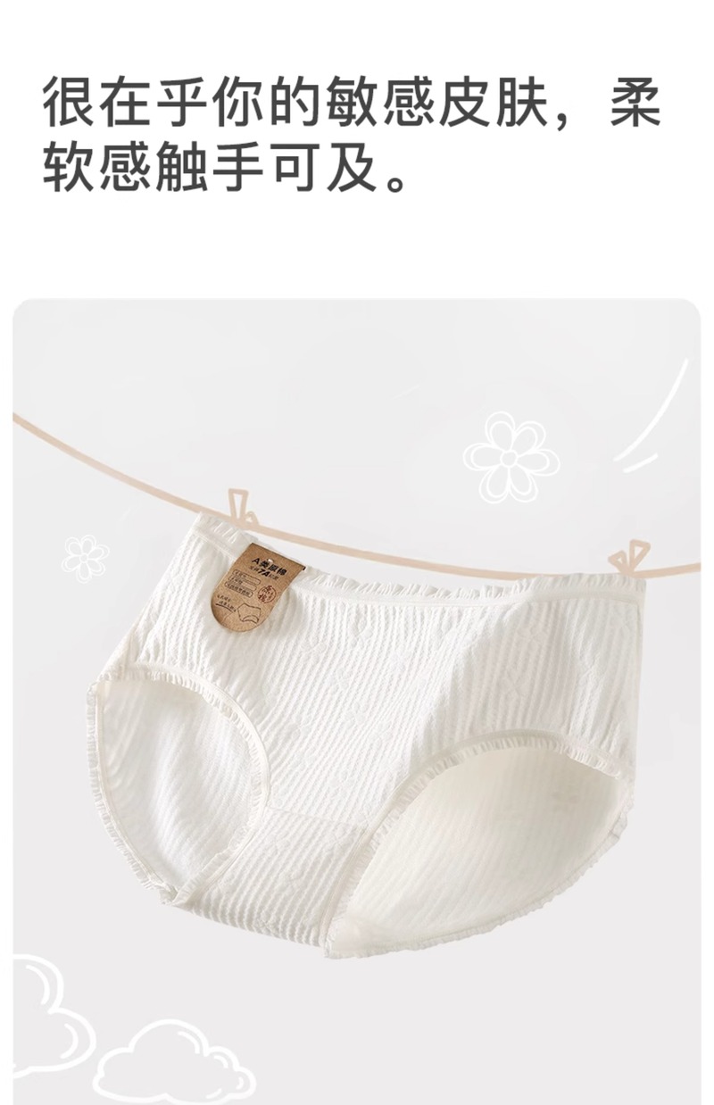 【3條裝】7A抑菌A類嬰兒棉女士內褲純棉白色女生基礎品質三角褲
