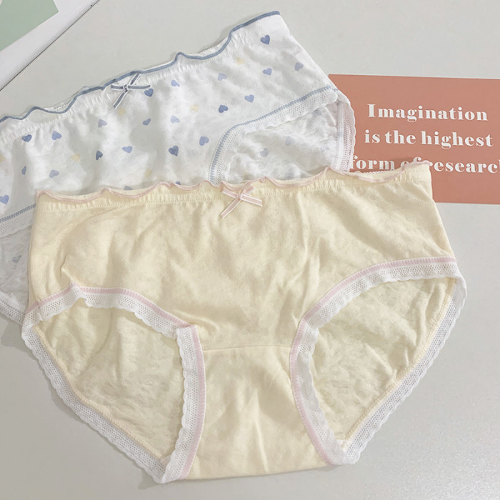 Twentyone香草夾心~法式甜美純色可愛少女純棉襠中腰三角褲內褲女