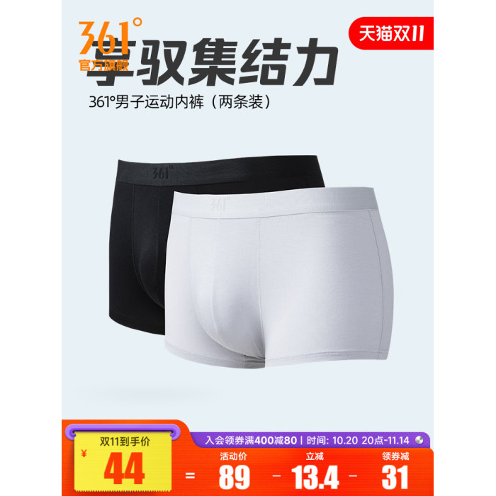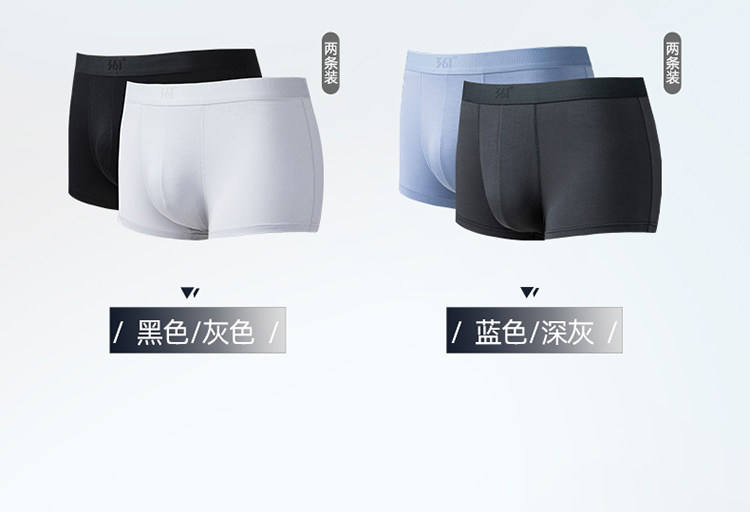 361度內褲2024年新款男兩條裝運動內褲男士內褲純色透氣四角褲子