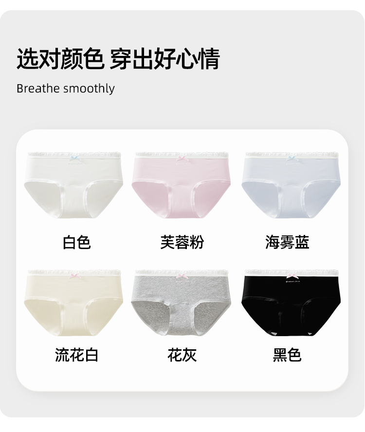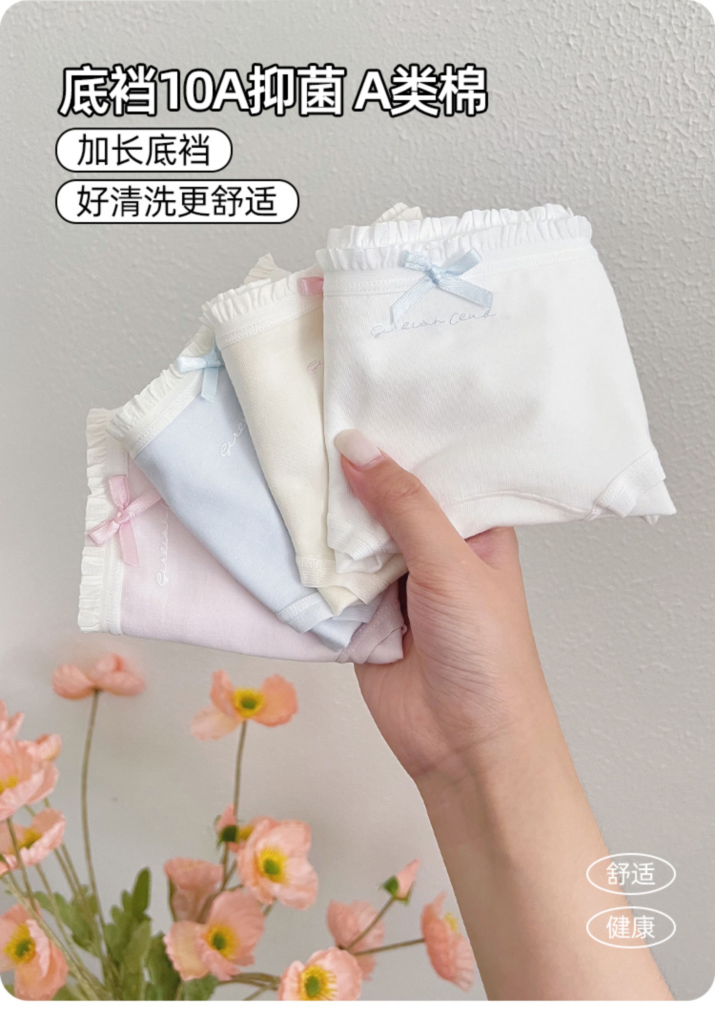 六衹兔子A類棉內褲女10A抑菌純棉透氣底襠低腰包臀甜美少女三角褲