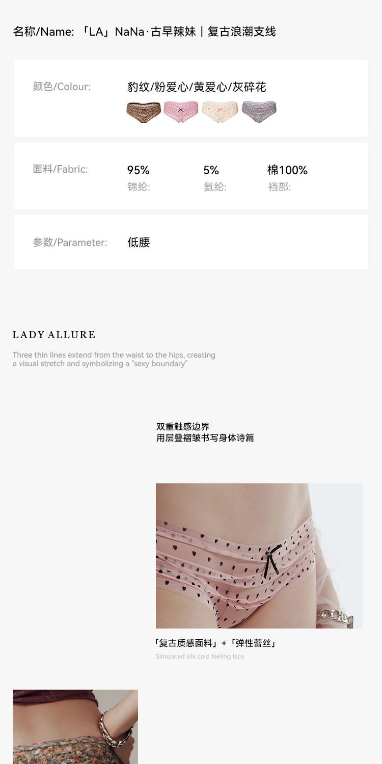 「LA」NaNa·古早辣妹|復古浪潮支線*蛋糕花邊豹紋碎花女士內褲
