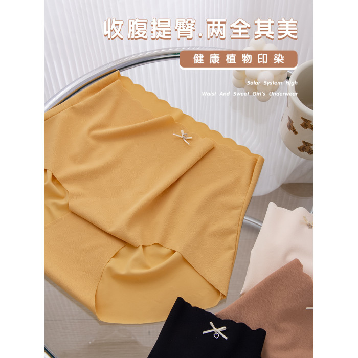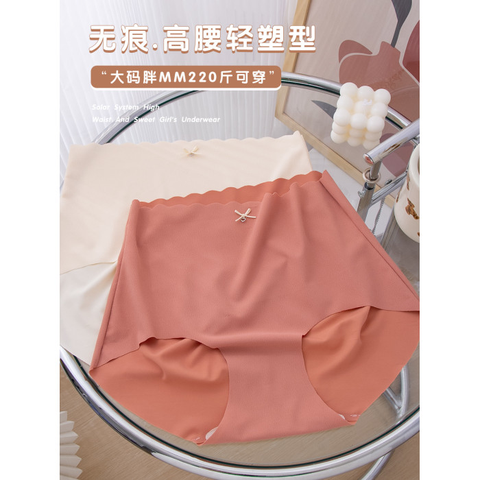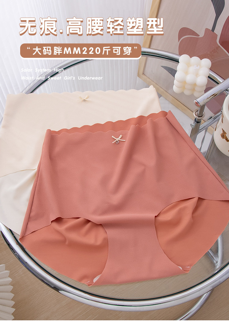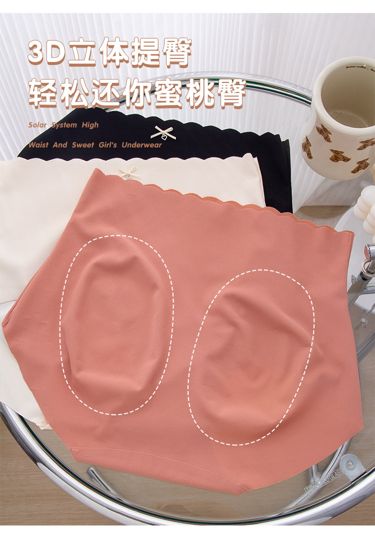 高腰冰絲抗菌無痕波浪邊大碼薄款內褲女包臀塑身女士透氣簡約提臀