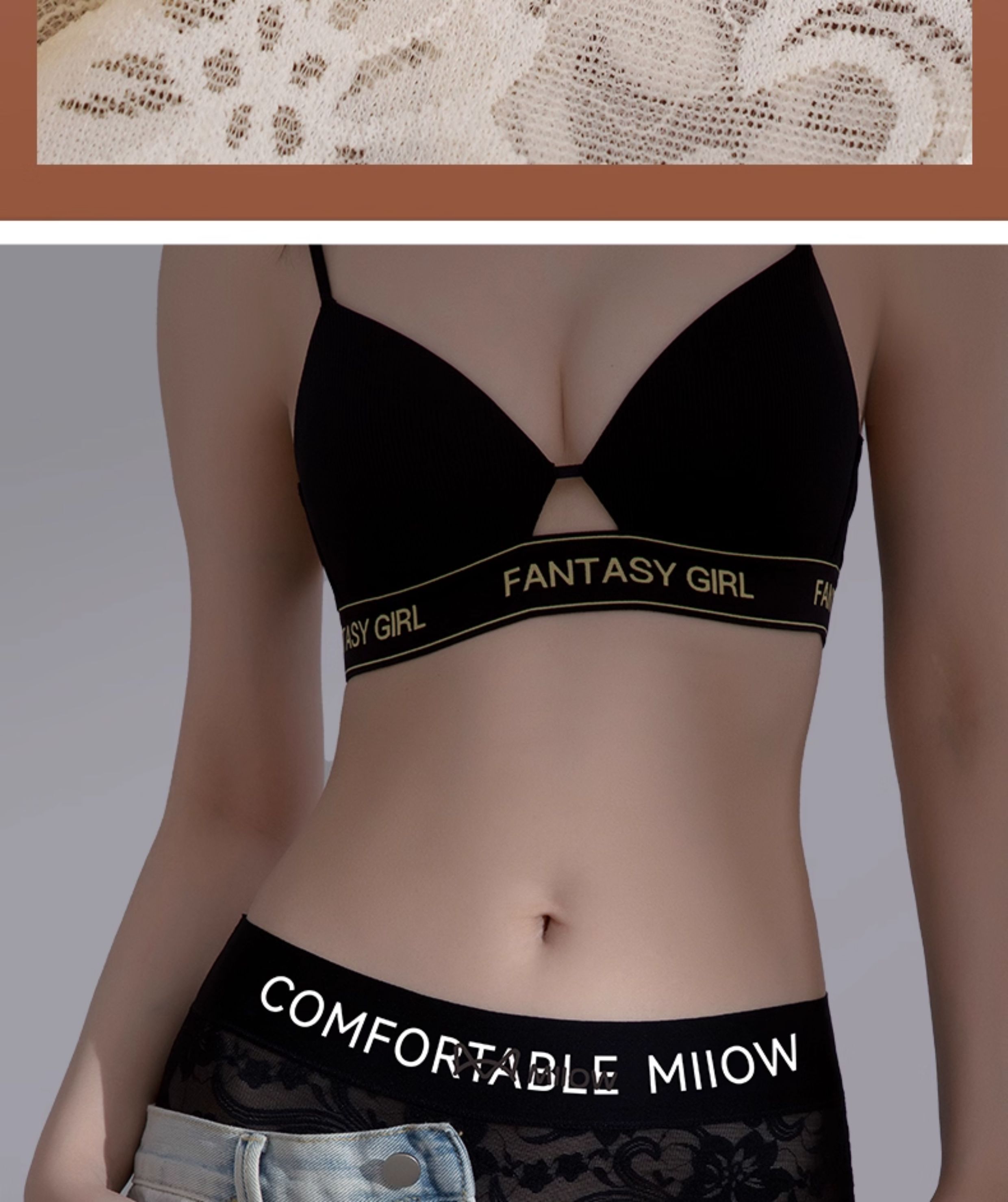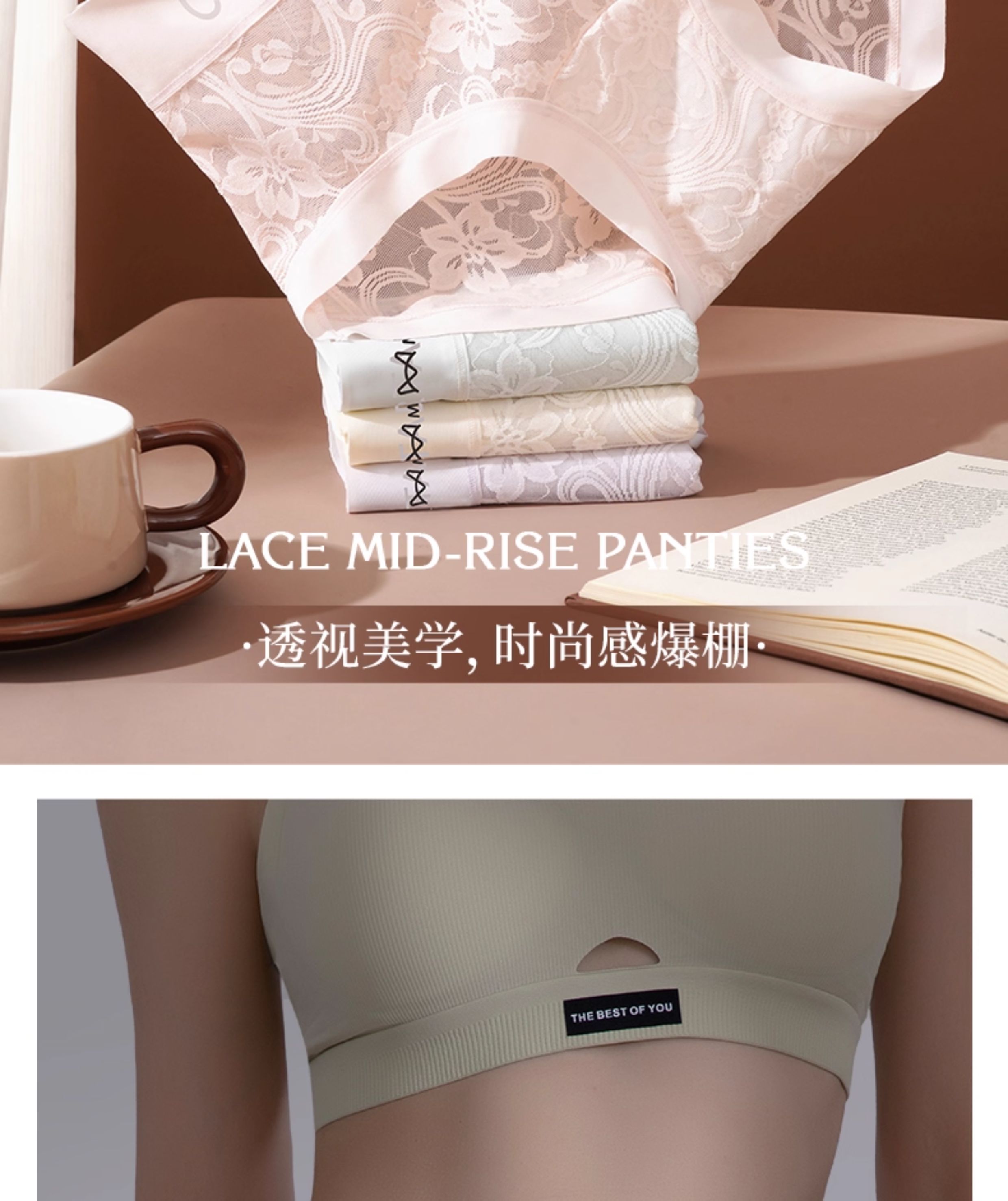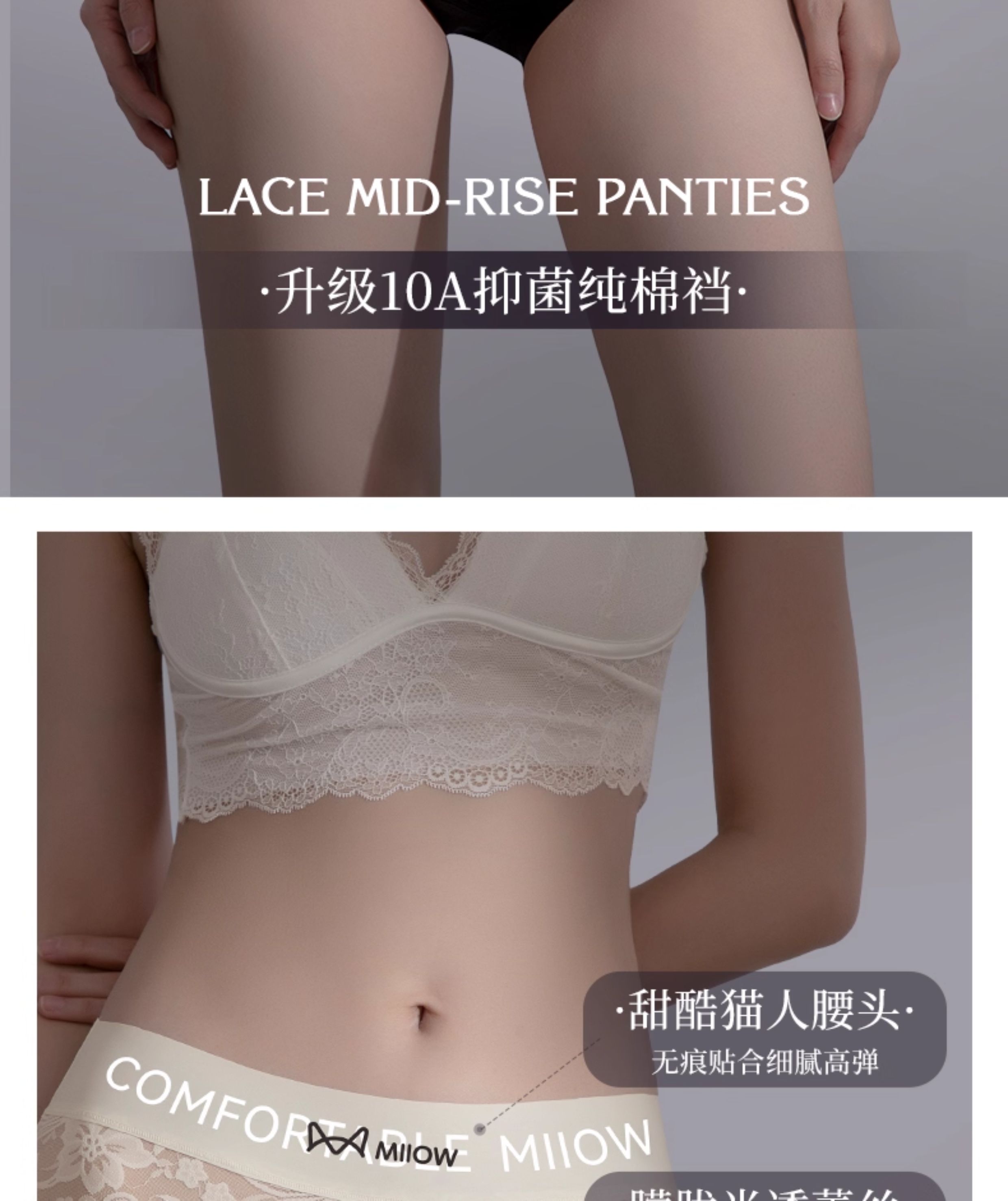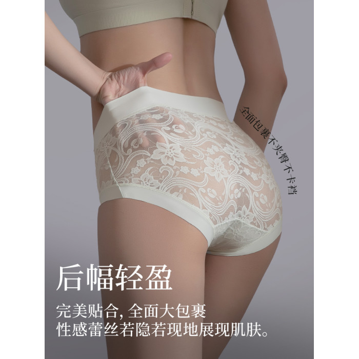 貓人無痕蕾絲字母時尚簡約加長底襠10A抑菌女士內褲性感網紗