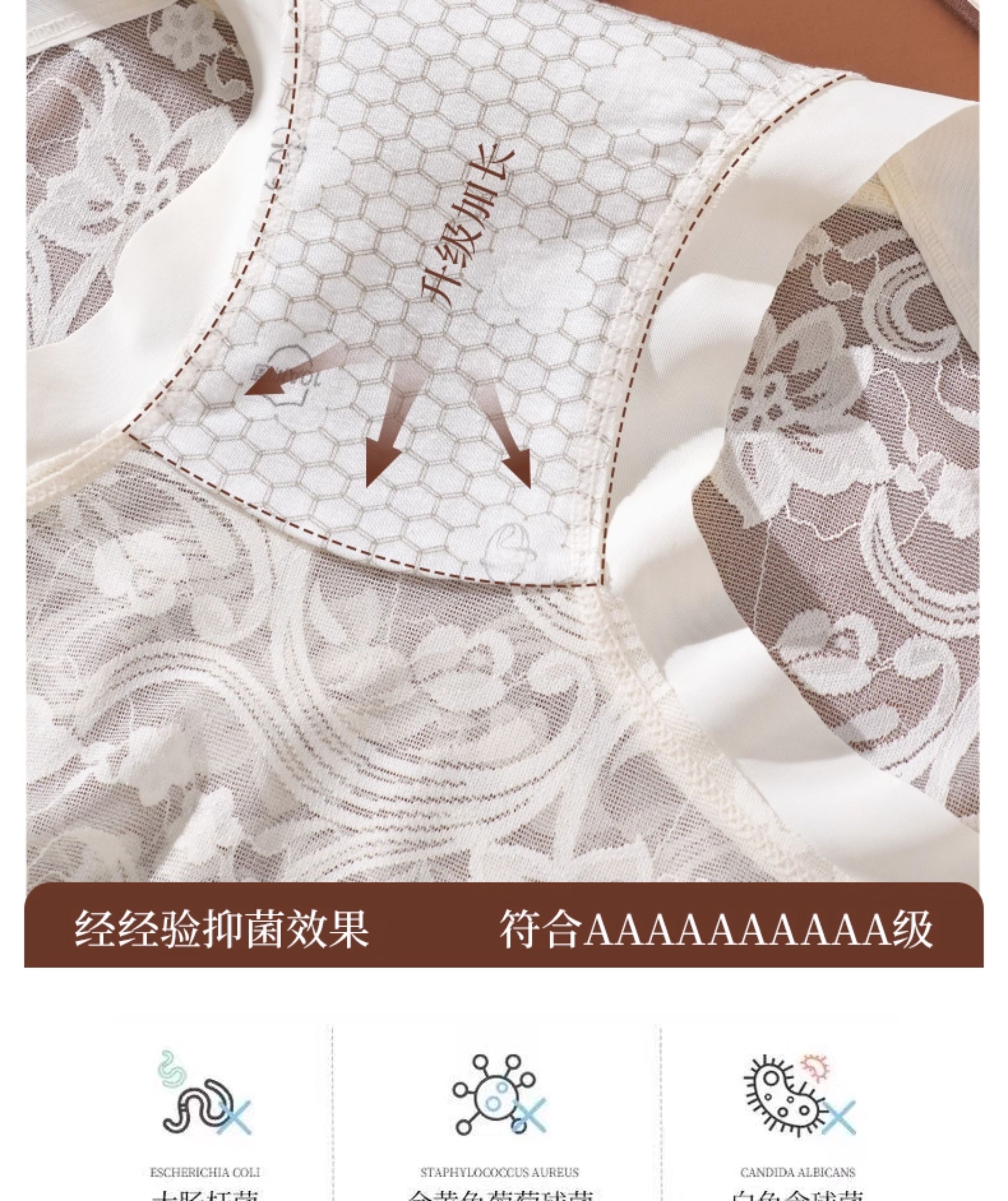 | 襠部材質成分 | 粘膠纖維(粘纖)91.1% 桑蠶絲4.7% 聚氨酯彈性纖維(氨綸)4.2% |