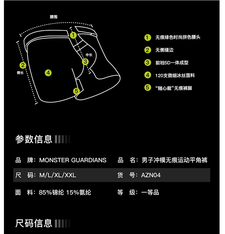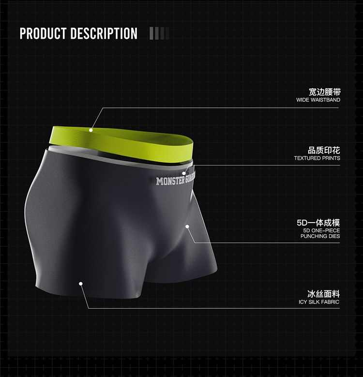 Monster Guardians運動內褲男透氣彈力平角褲跑步訓練健身四角褲