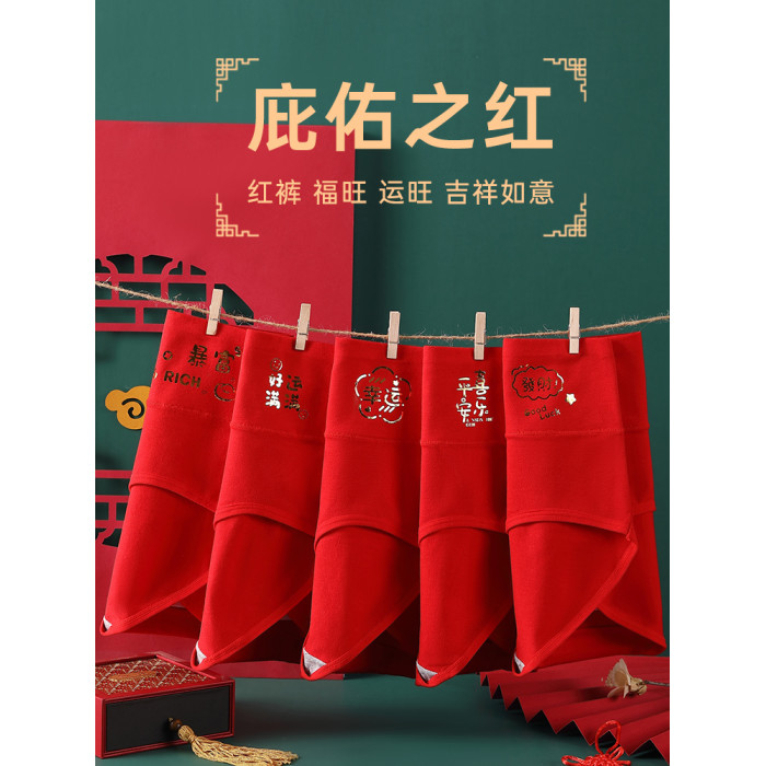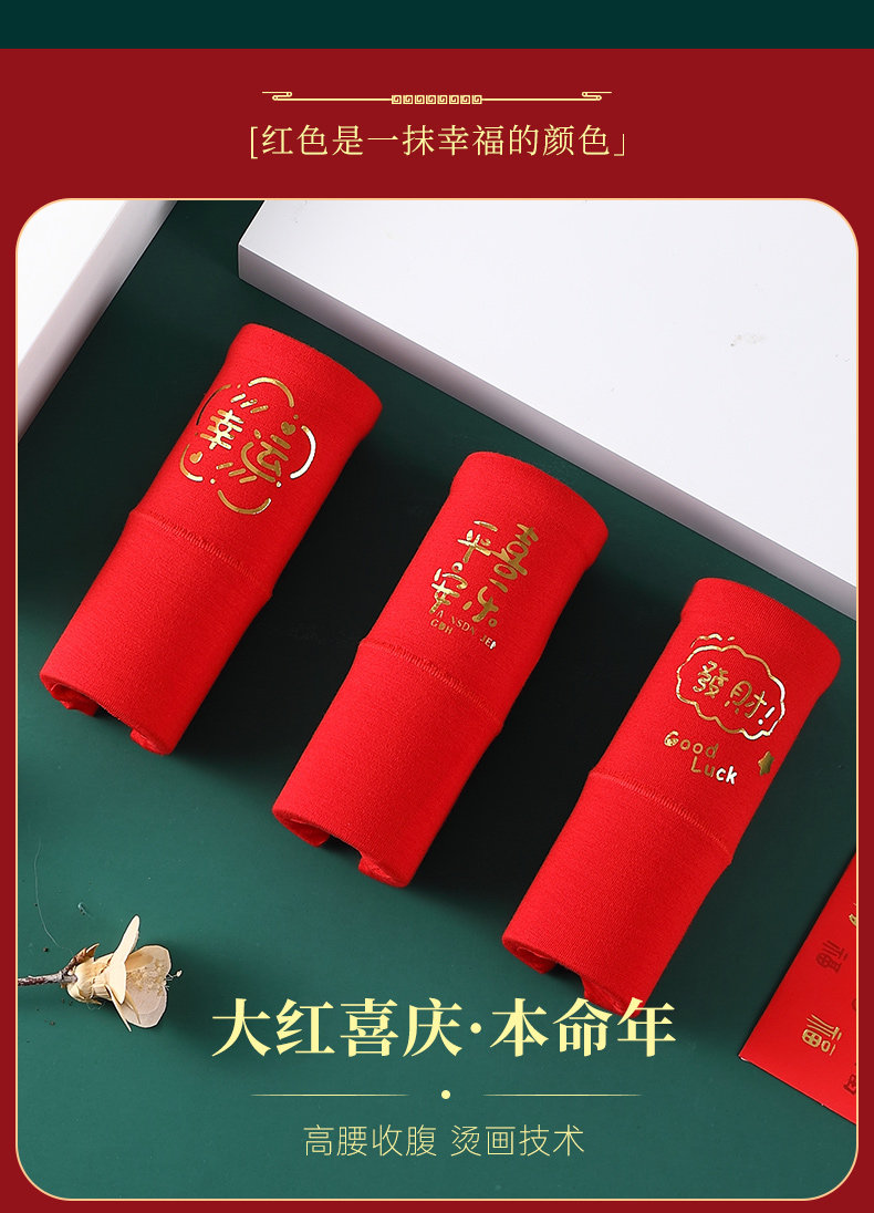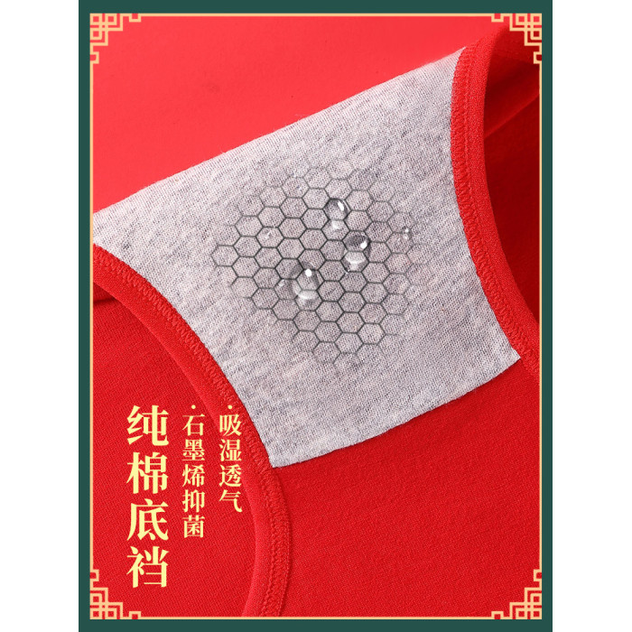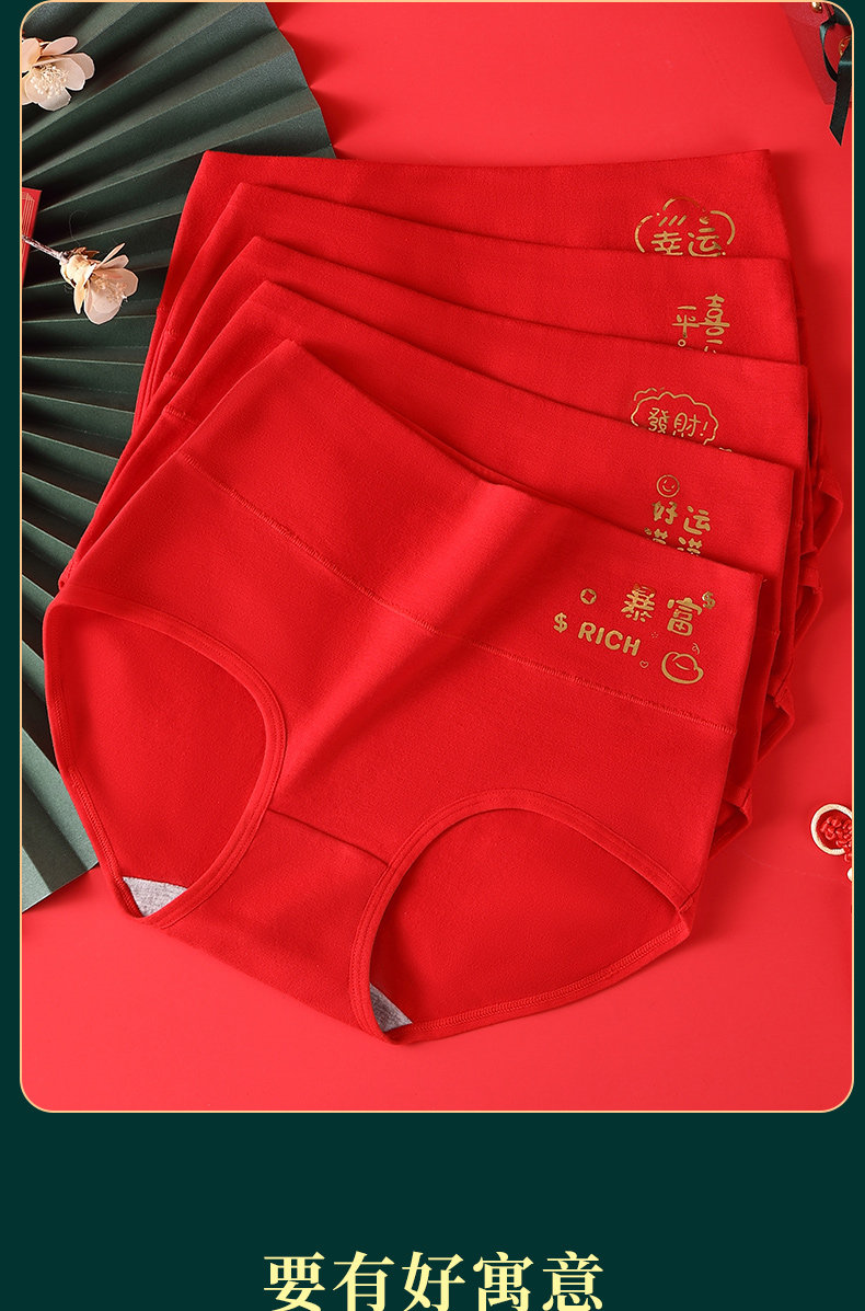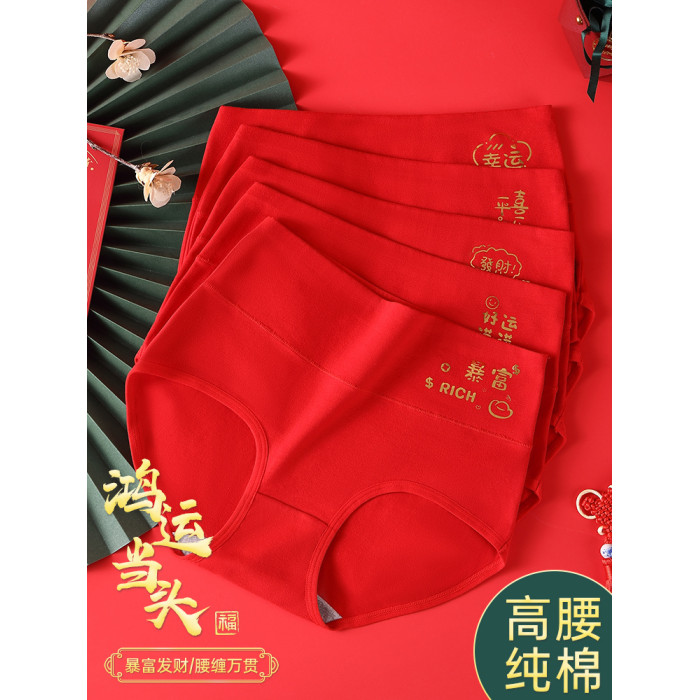 紅色高腰本命年女士內褲全棉抗菌石墨烯襠秋冬2024新款結婚三角褲