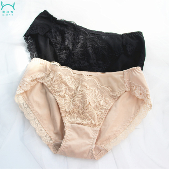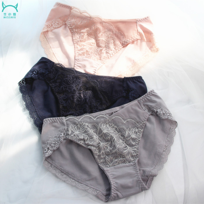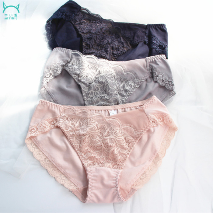 出口日本中低腰莫代爾蕾絲無痕三角女士內褲舒適透氣彈性大碼包臀