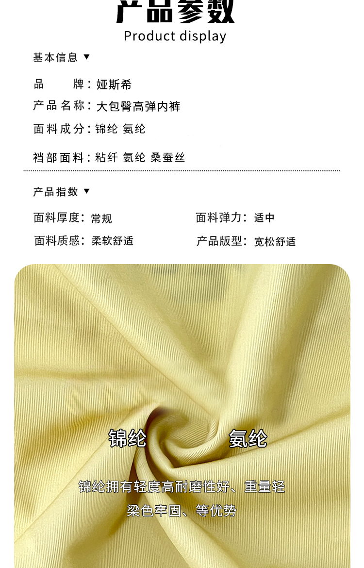 | 襠部材質成分 | 粘膠纖維(粘纖)91% 桑蠶絲4.1% 聚氨酯彈性纖維(氨綸)3.4% 聚醯胺纖維(錦綸)1.5% |
