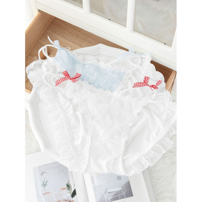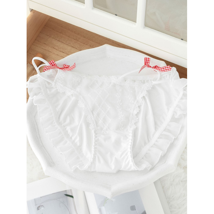 春日糖漾 純欲鏤空交織細帶冰絲內褲精緻刺綉蝴蝶結女士三角胖次
