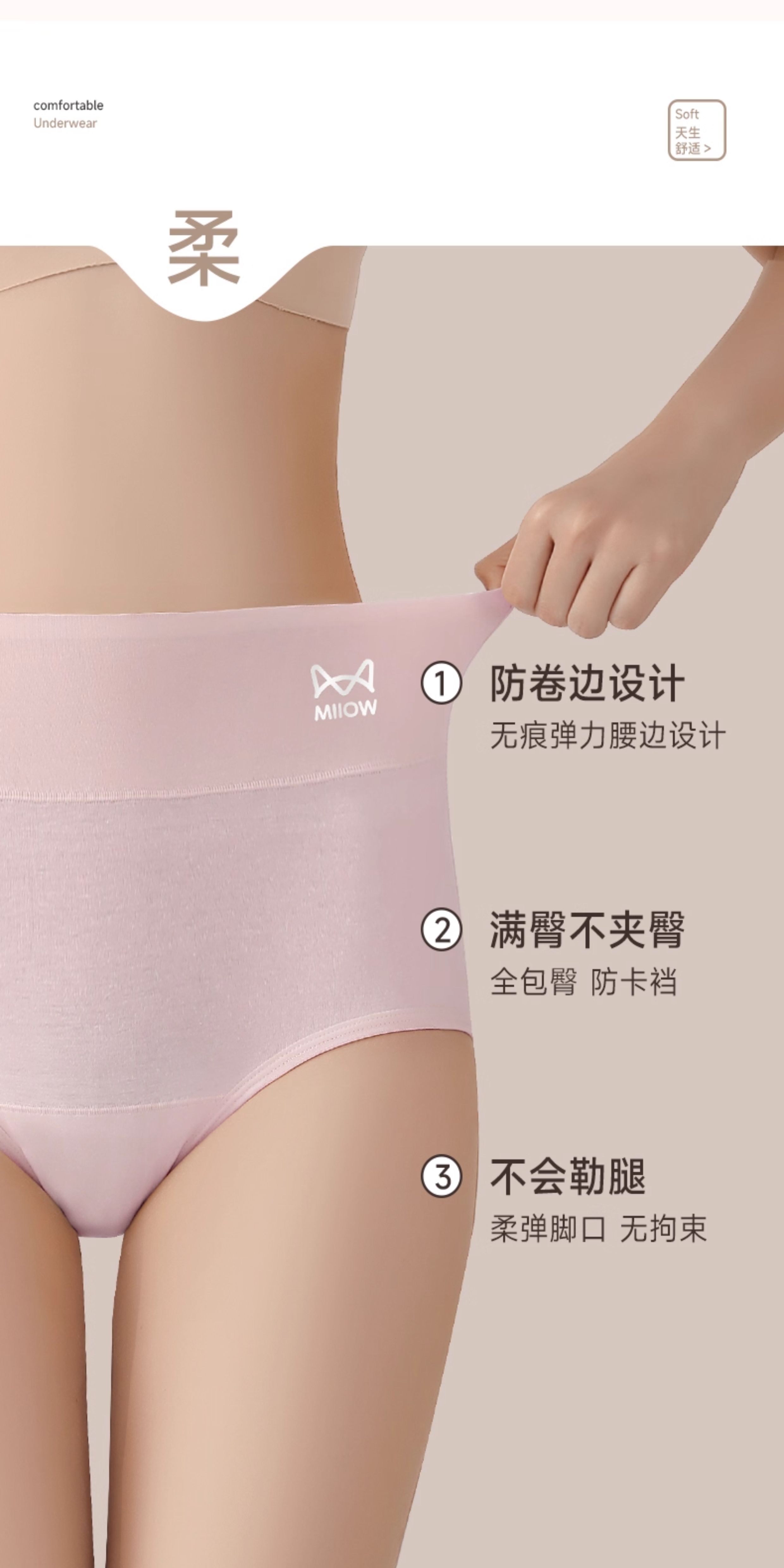 貓人內褲女士純棉高腰收腹提臀翹臀純棉加長襠透氣無痕女士三角褲