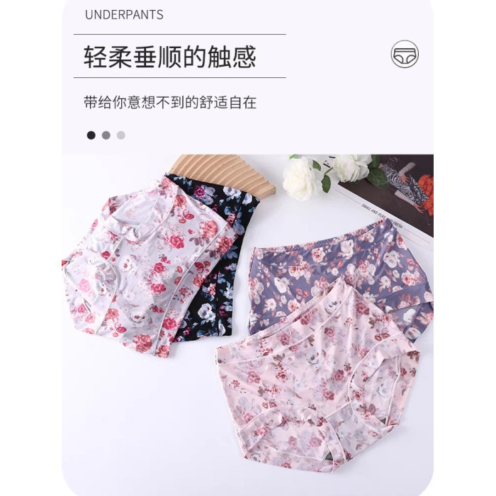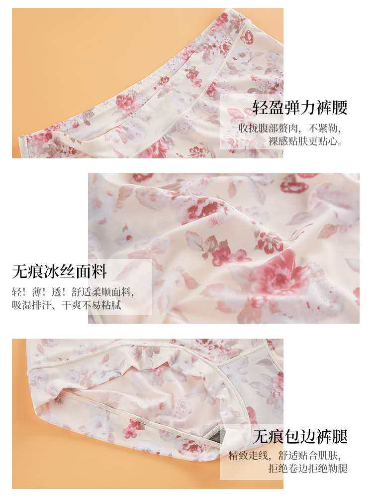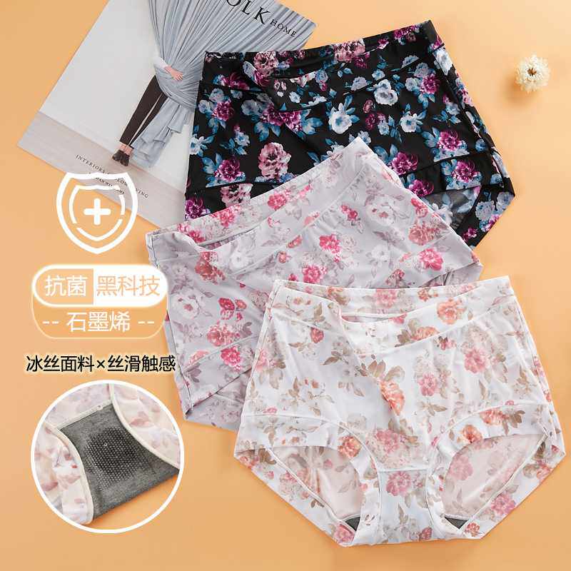 冰絲款內褲女石墨烯抗菌無痕性感女士包臀不卷薄款透氣高腰三角褲
