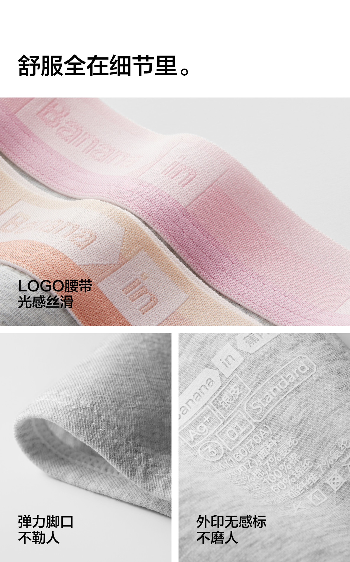 3件|蕉內銀皮301S女士內褲純棉透氣襠不夾美式運動短褲性感三角褲