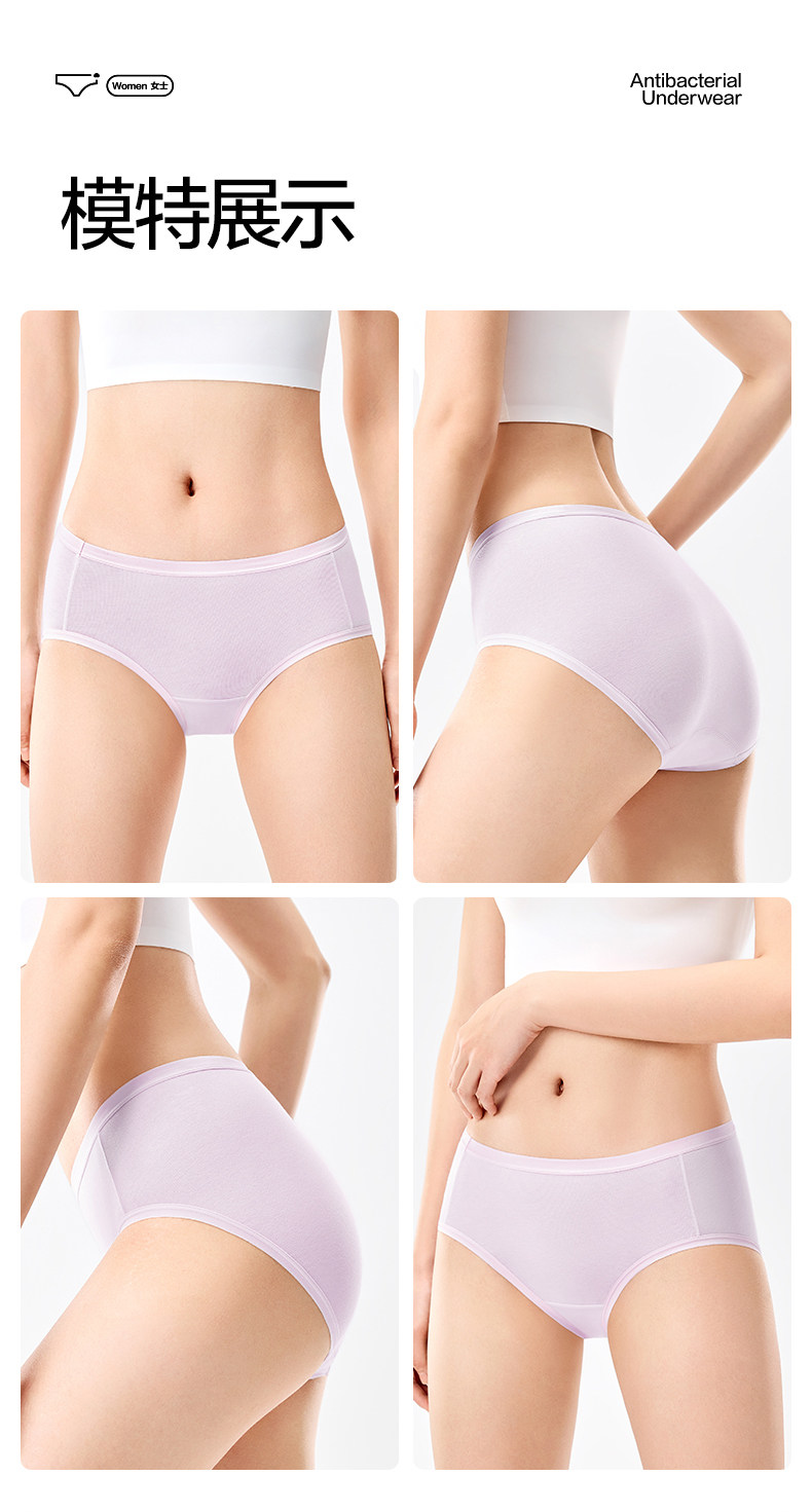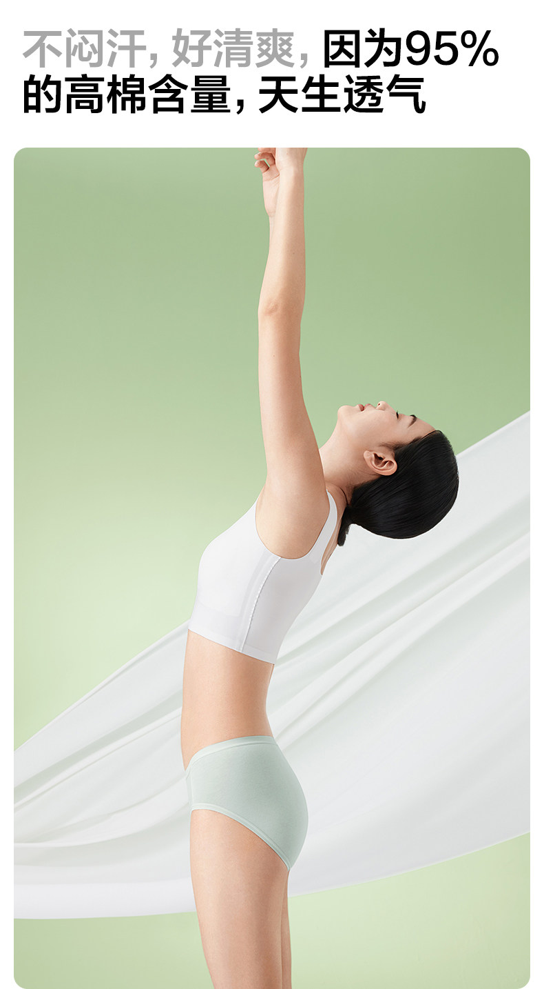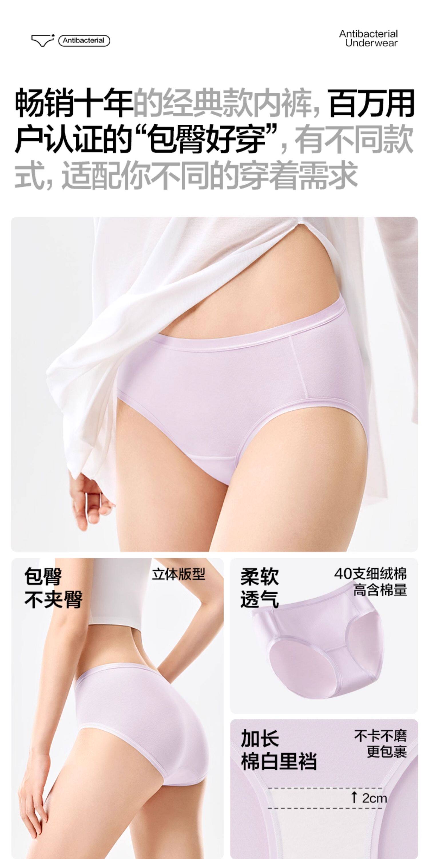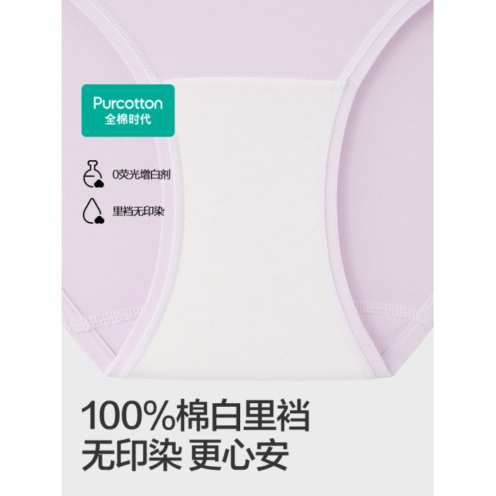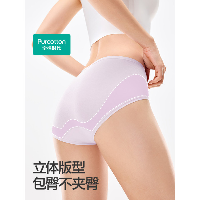 全棉時代內褲女士純棉中腰女生內褲三角褲短褲新款不夾臀抗菌內褲