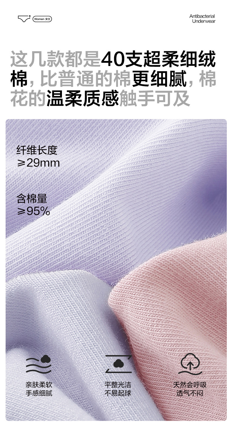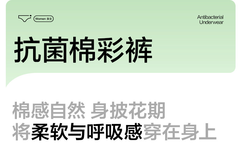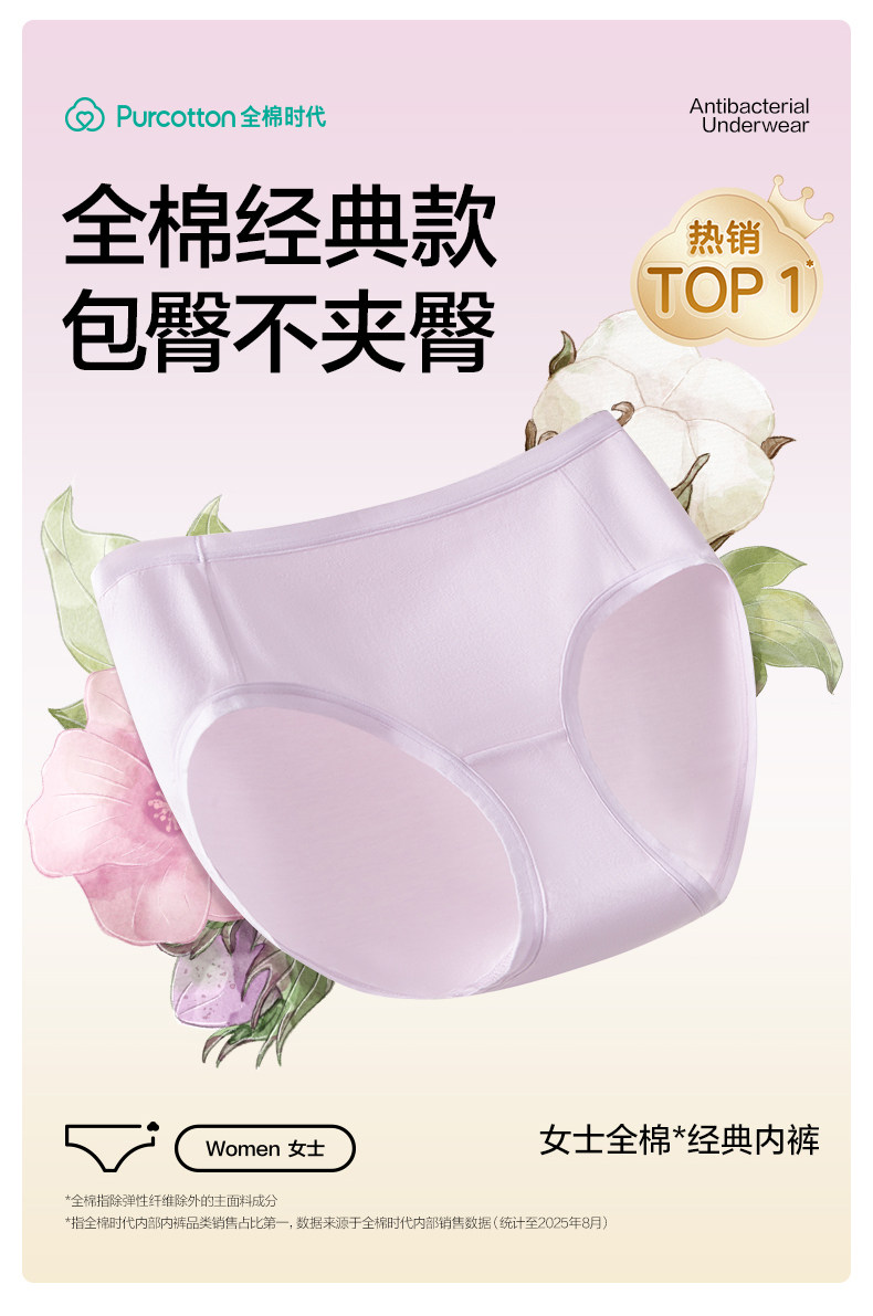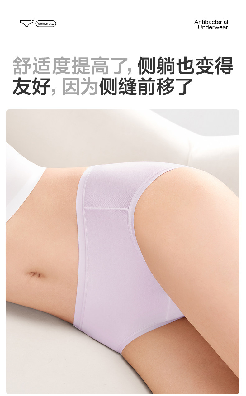 全棉時代內褲女士純棉中腰女生內褲三角褲短褲新款不夾臀抗菌內褲