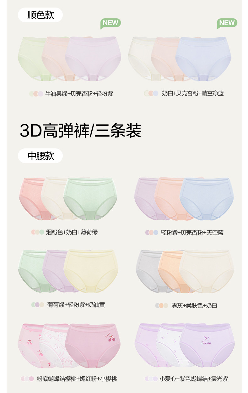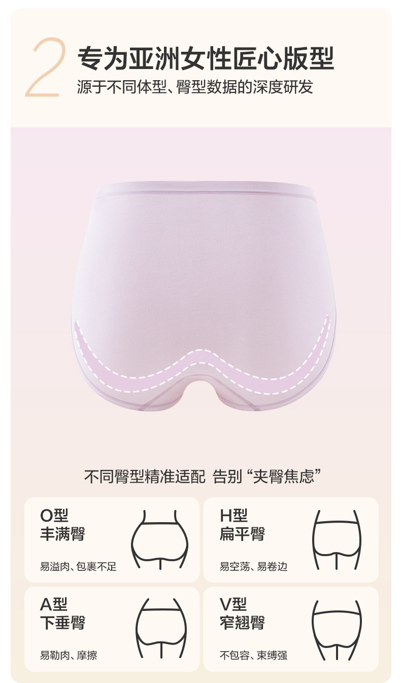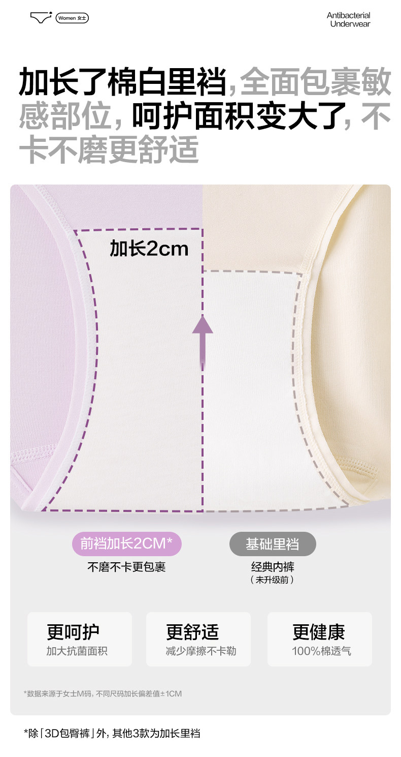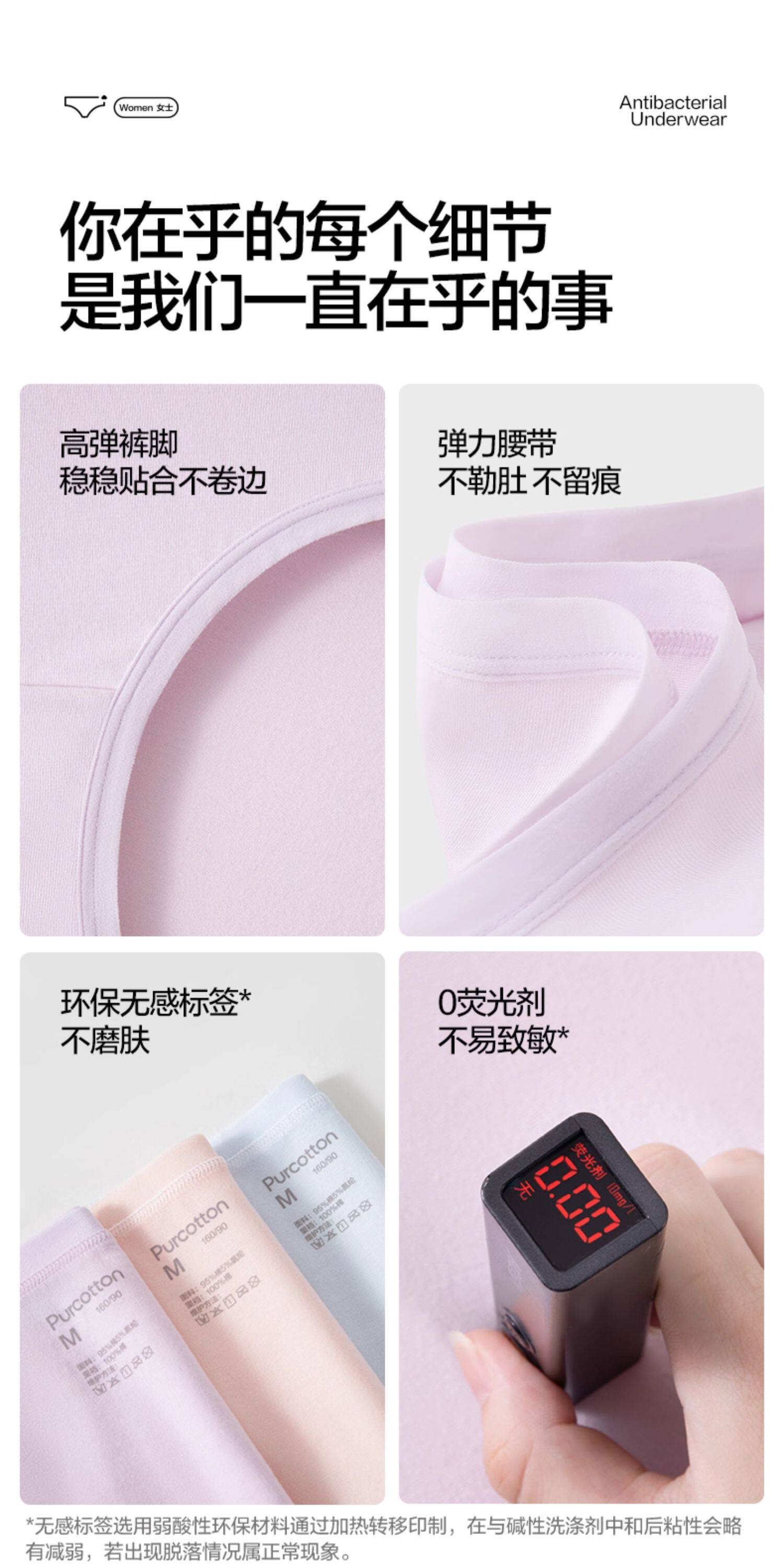 全棉時代內褲女士純棉中腰女生內褲三角褲短褲新款不夾臀抗菌內褲