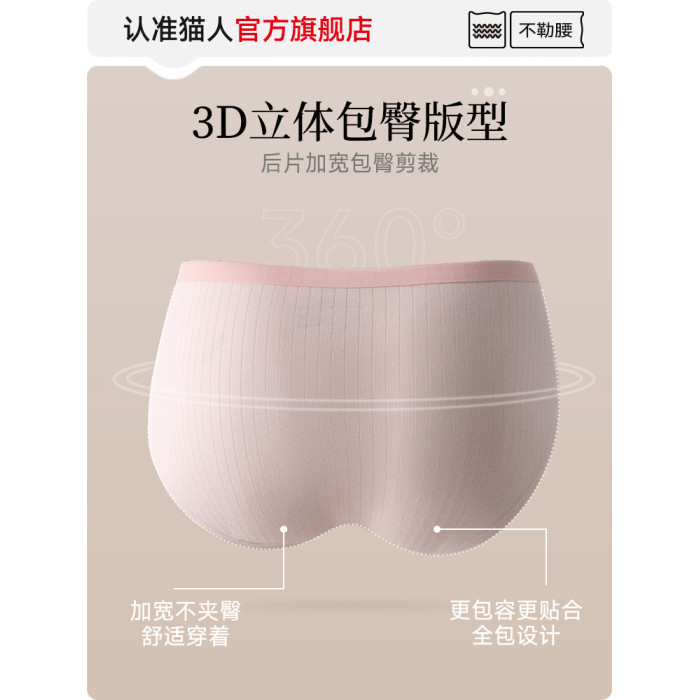 貓人無痕內褲女士純棉抗菌蠶絲檔2025新款少女生中腰不夾臀三角褲