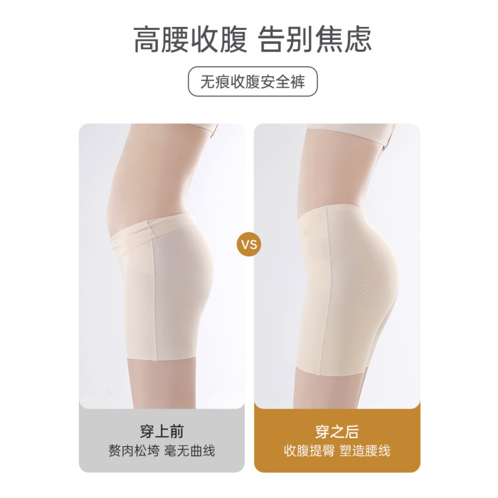 高腰冰絲內褲三合一安全褲收腹收小肚子夏季薄款防走光打底平角褲