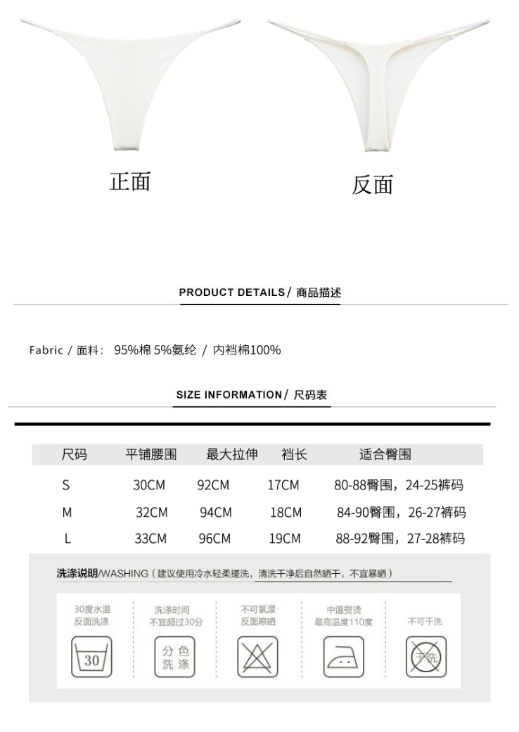 3條裝細帶丁字打底褲低腰棉質運動健身比基尼隱形打底內褲女