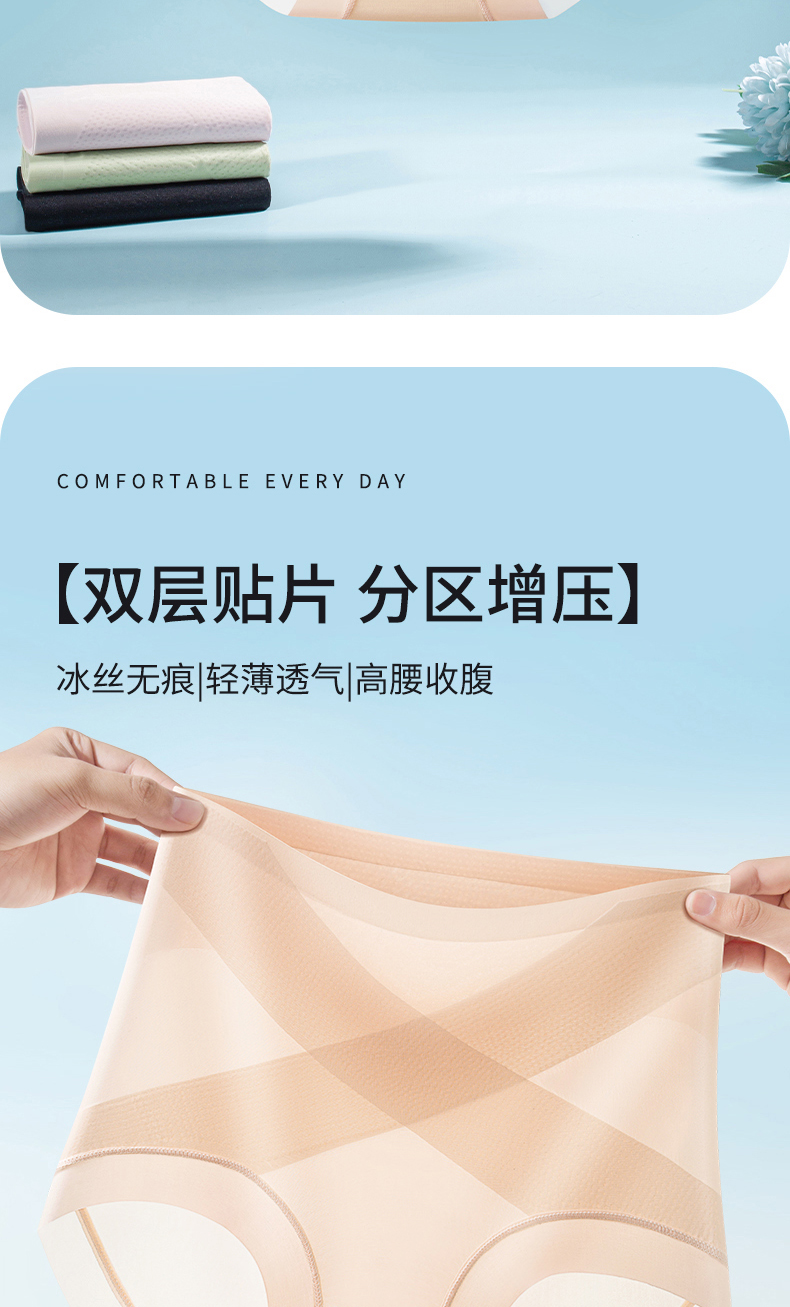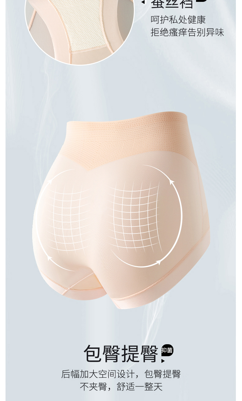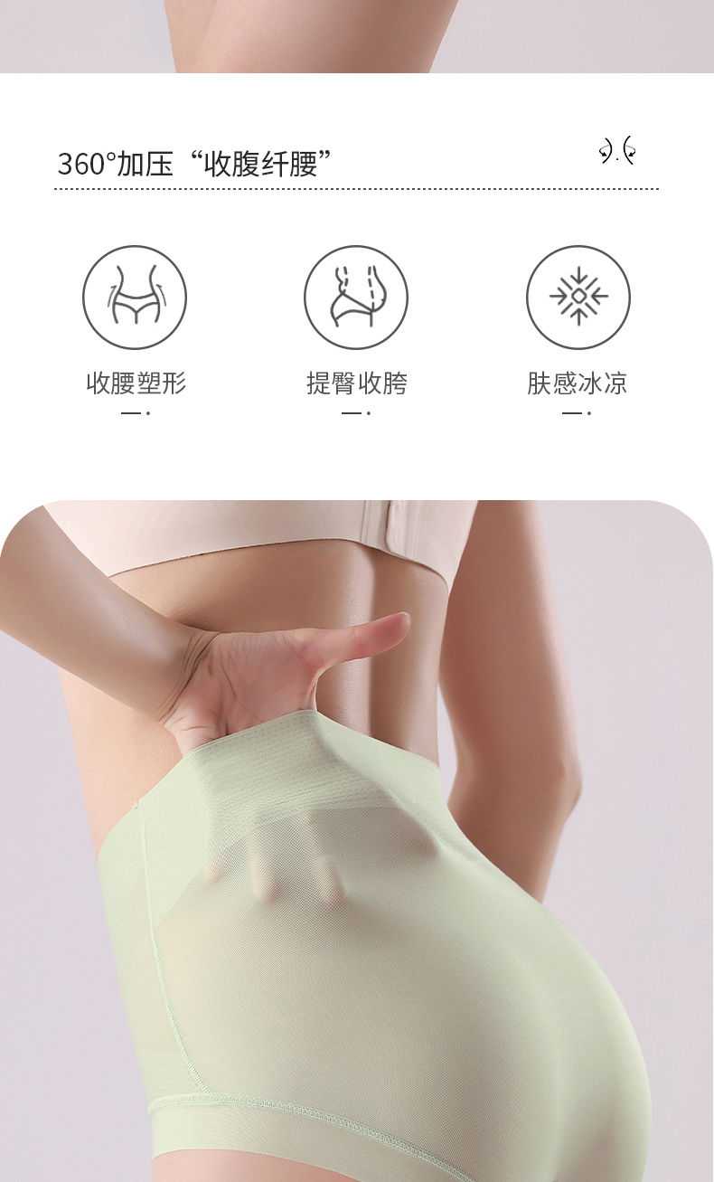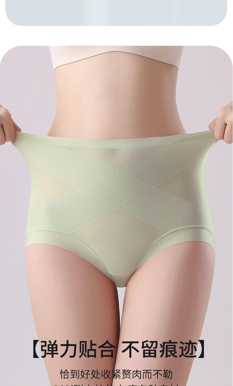 無痕高腰內褲女收腹小肚子翹臀塑形冰絲超薄涼感抑菌蠶絲襠提臀褲