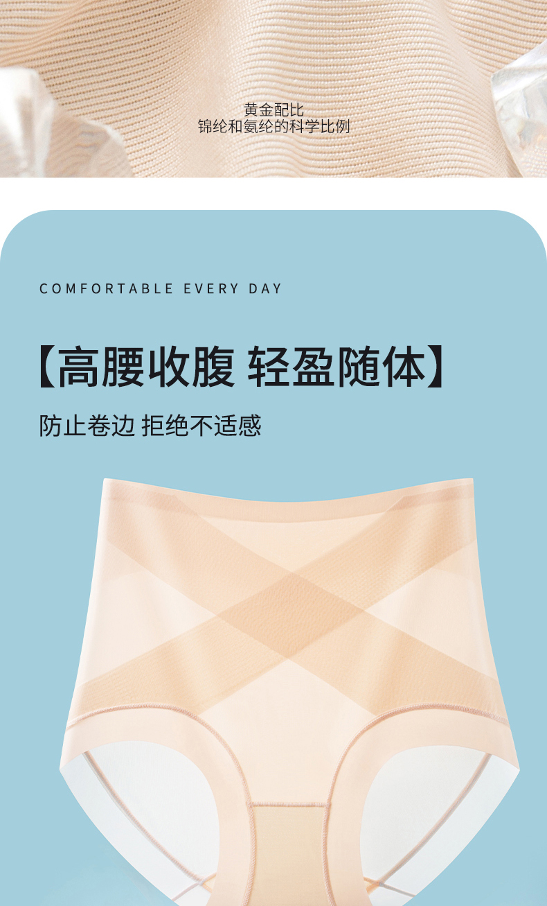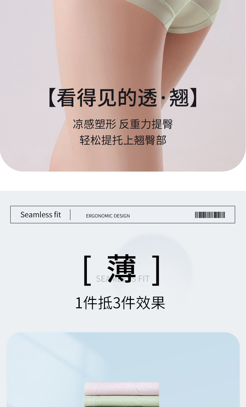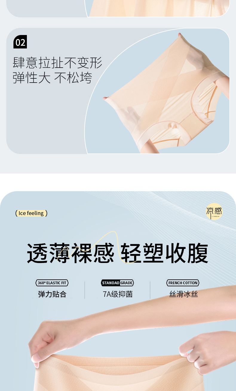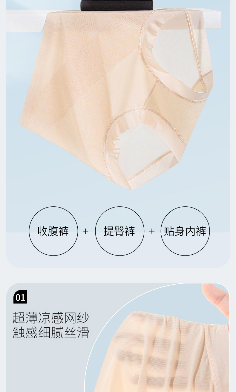 無痕高腰內褲女收腹小肚子翹臀塑形冰絲超薄涼感抑菌蠶絲襠提臀褲