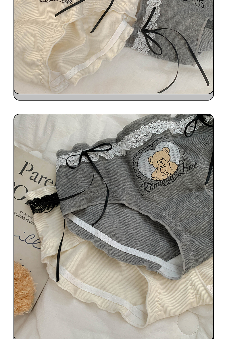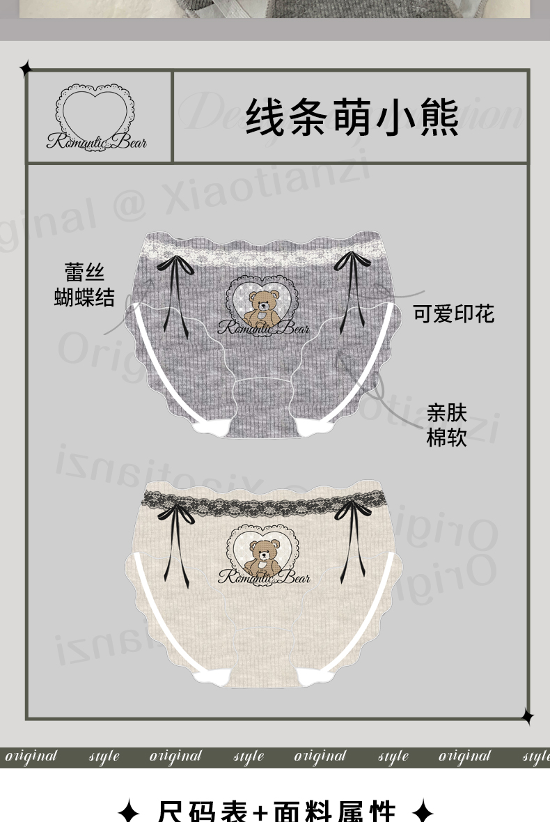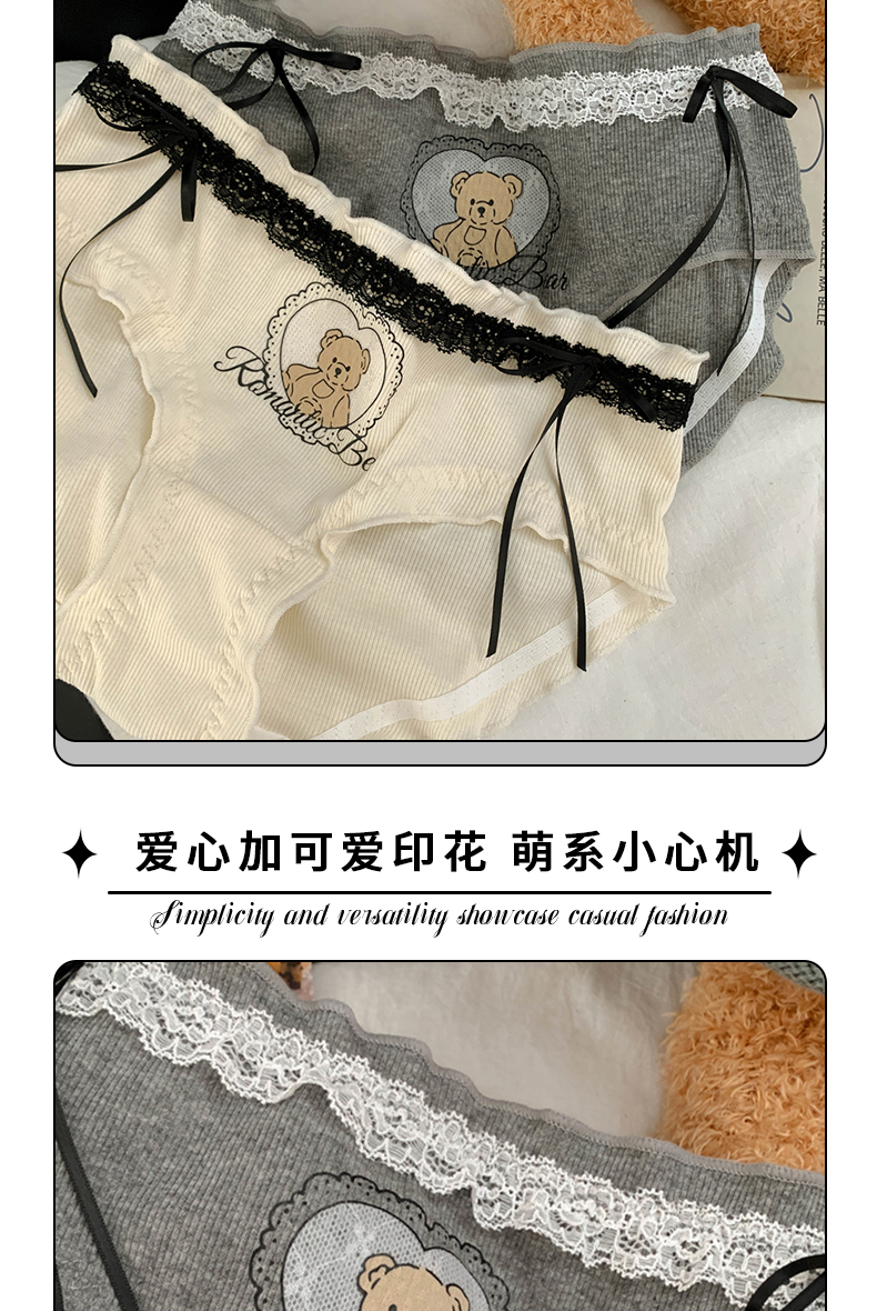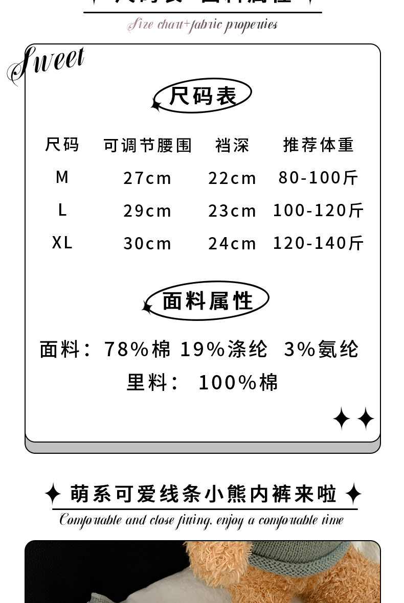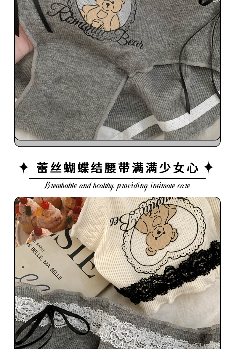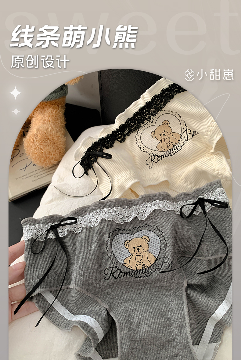 線條萌小熊~女生可愛內褲女2026新款透氣純棉7a級抗菌女士三角褲