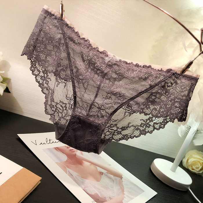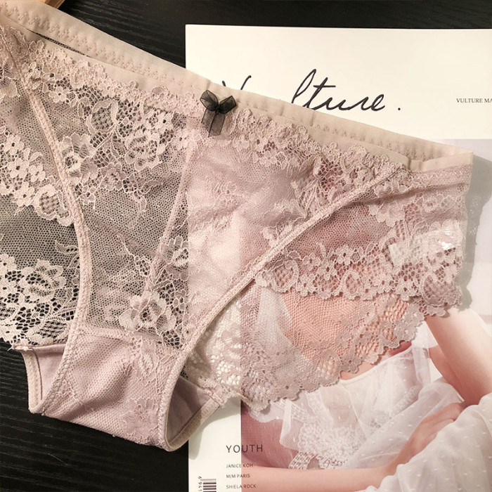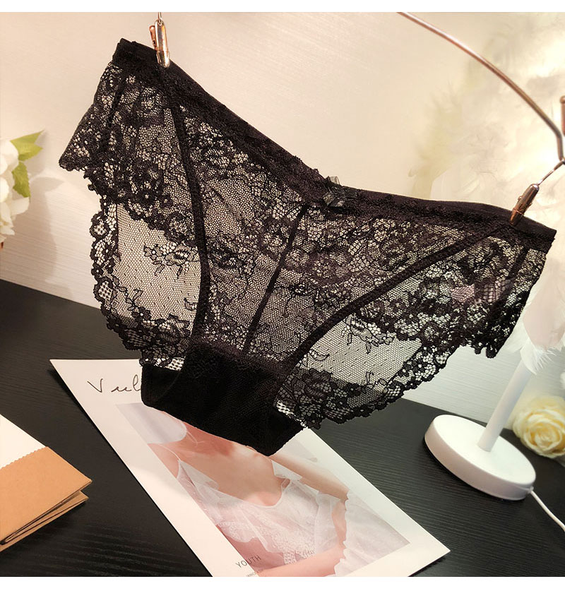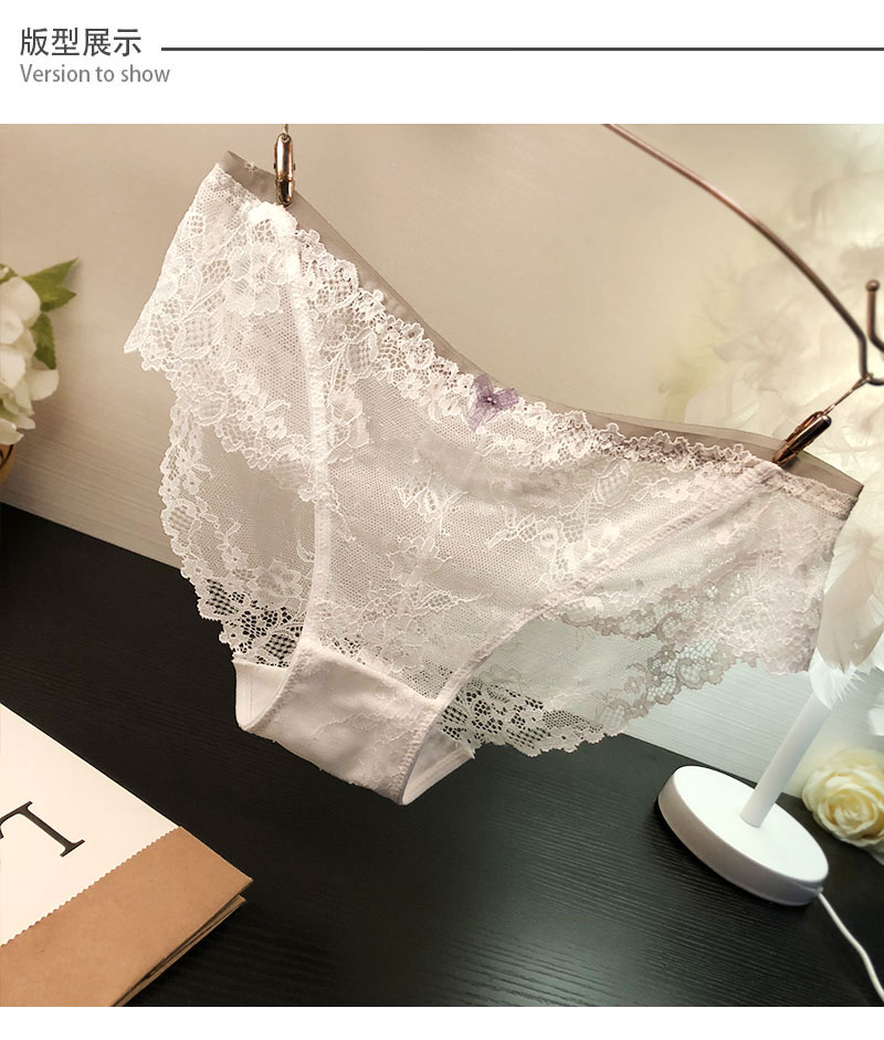歐美無痕性感蕾絲內褲女士低腰微透視三角褲純棉襠甜美少女底褲薄