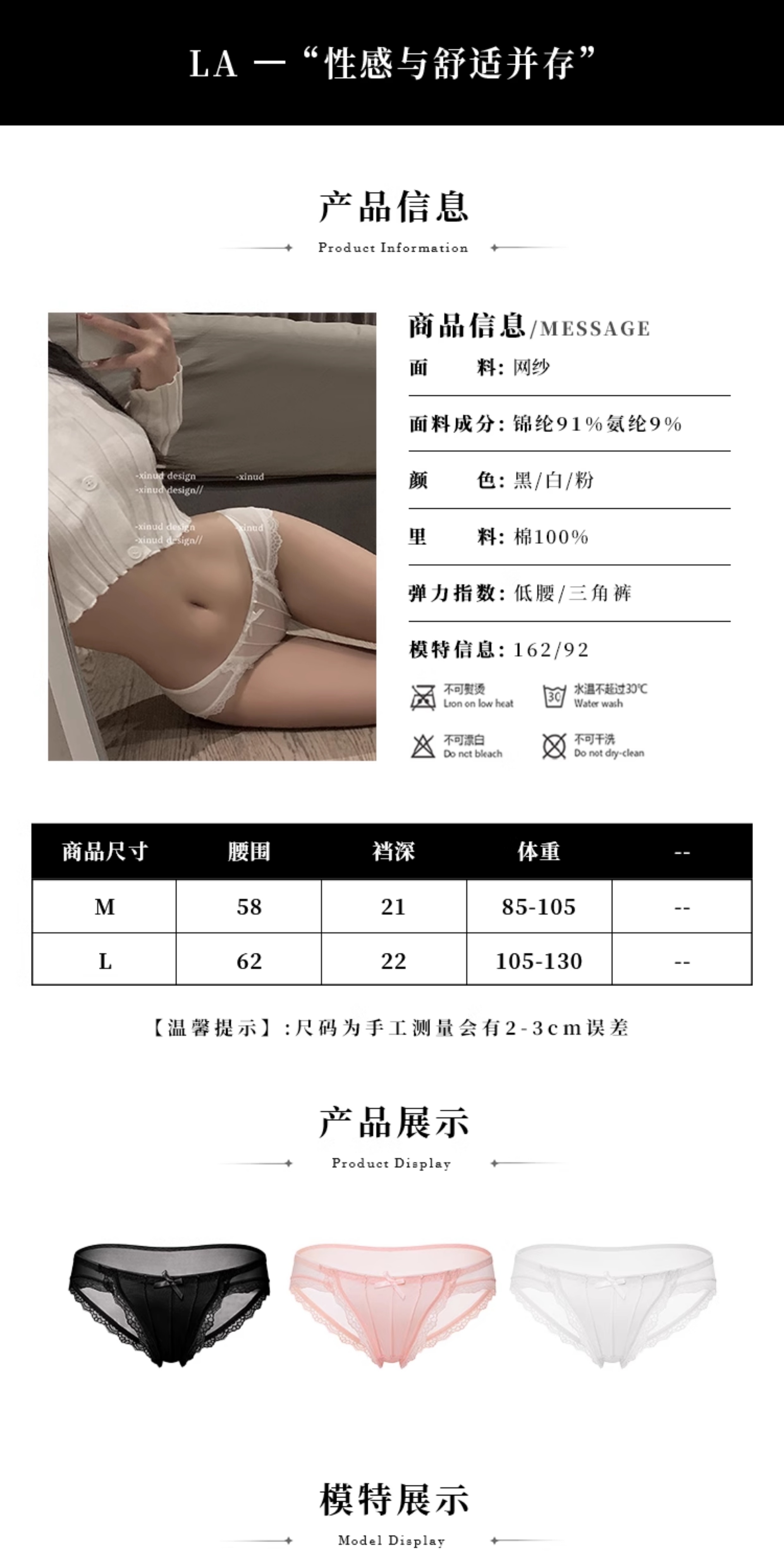 「LA」Julie·沉靜生溫|靜感系列*性感優雅蕾絲網紗純欲女士內褲