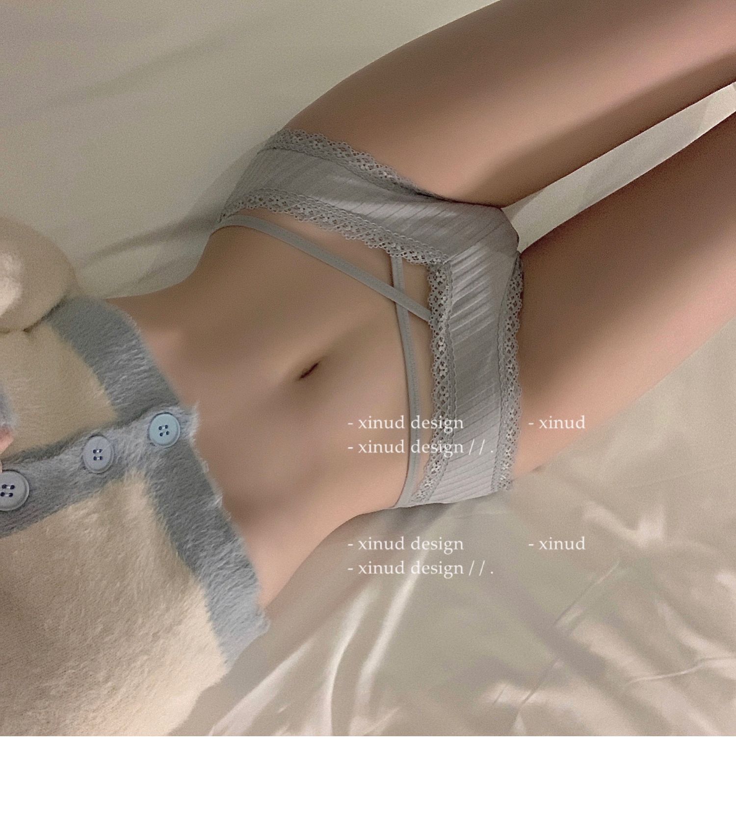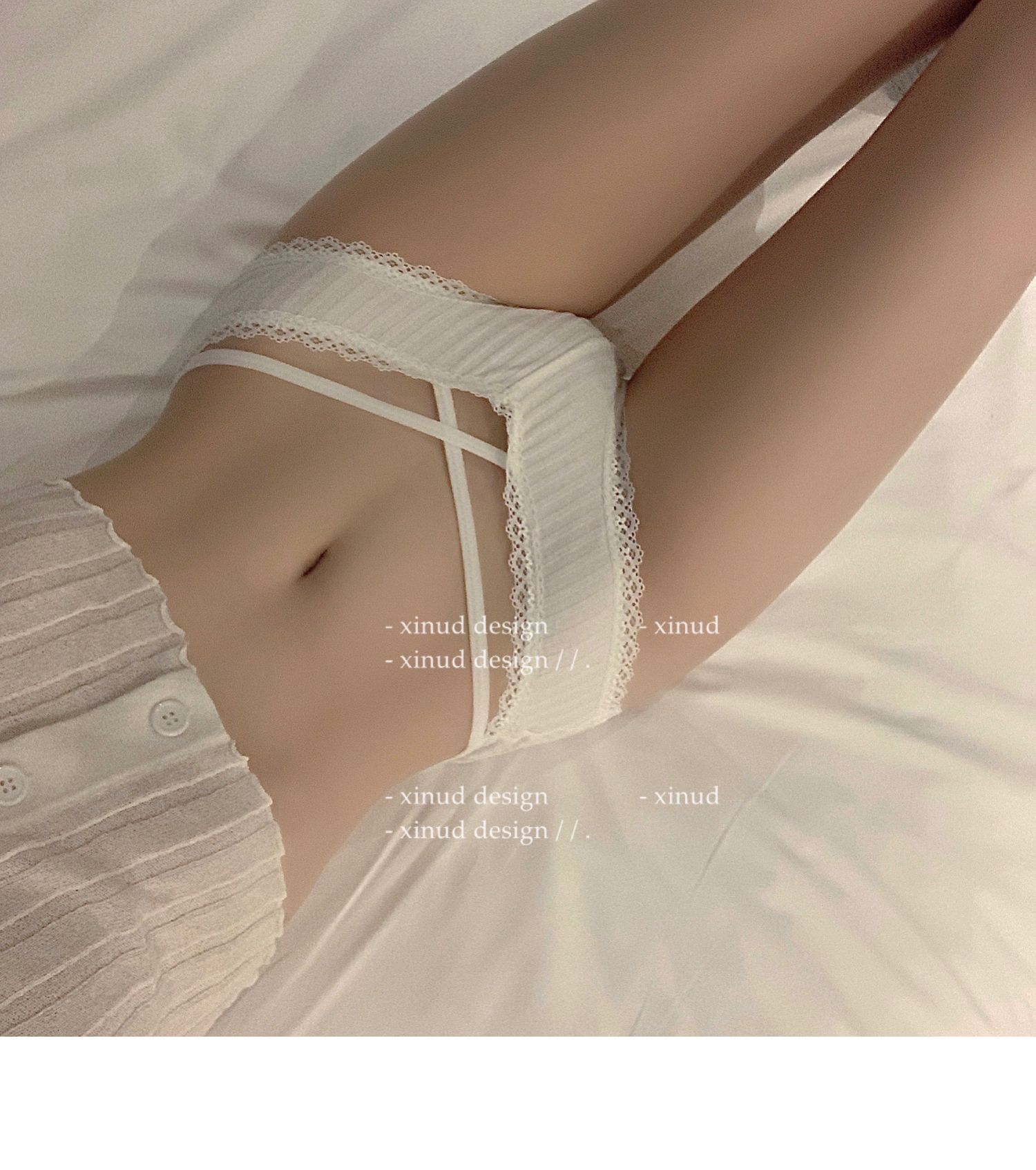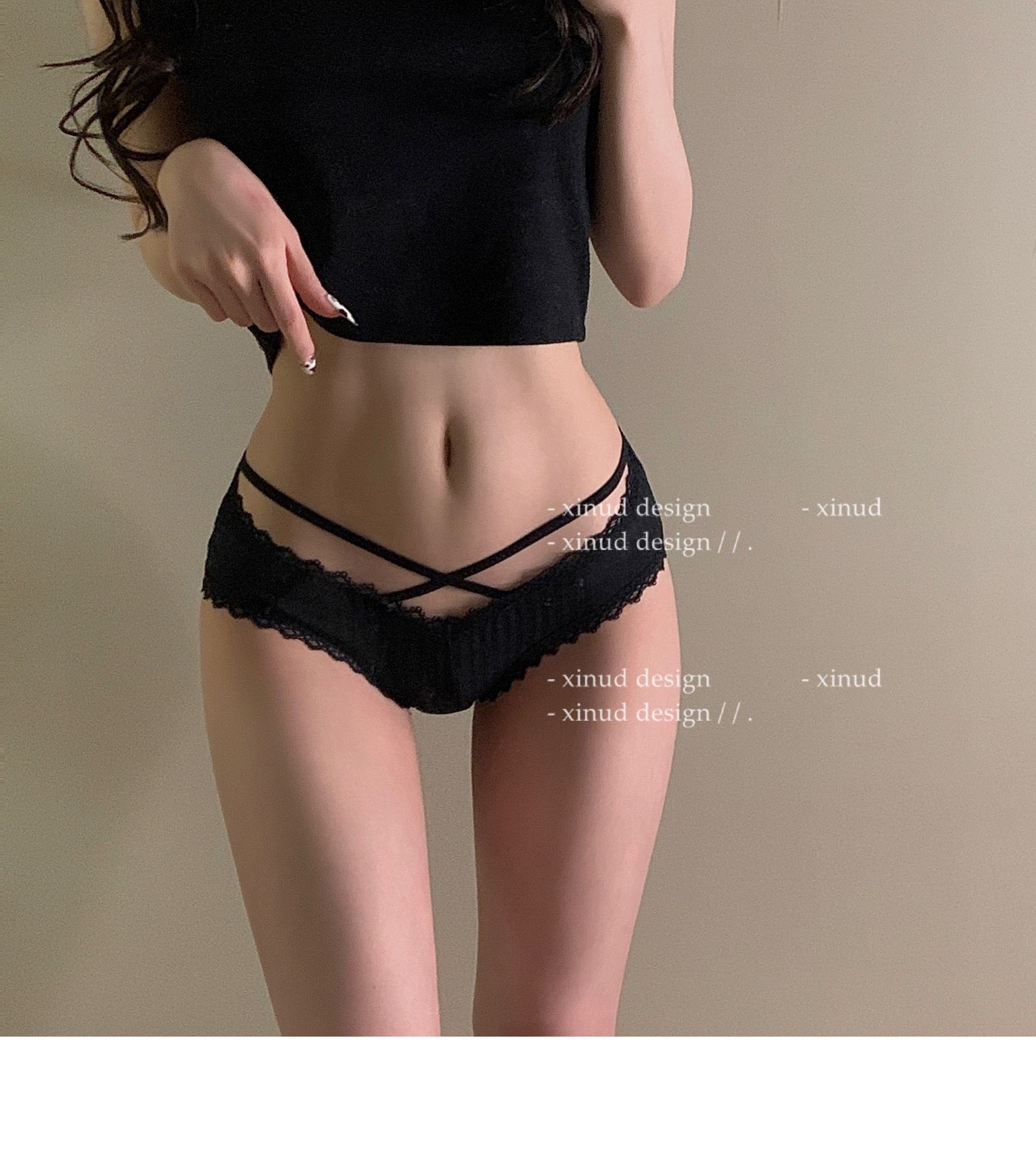 「LA」正經的性感*舒適純棉檔鏤空三角褲交叉蕾絲邊低腰綁帶內褲