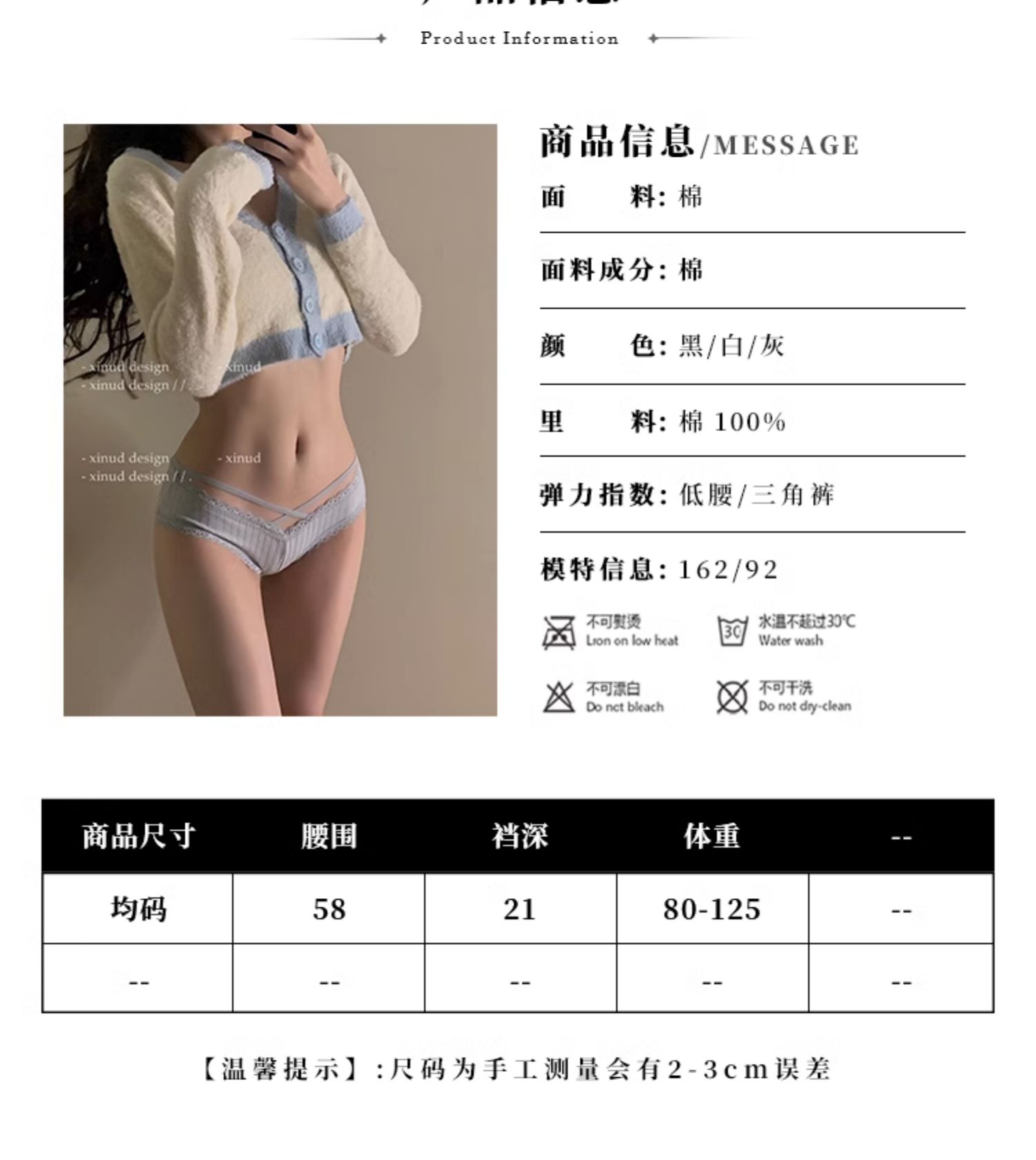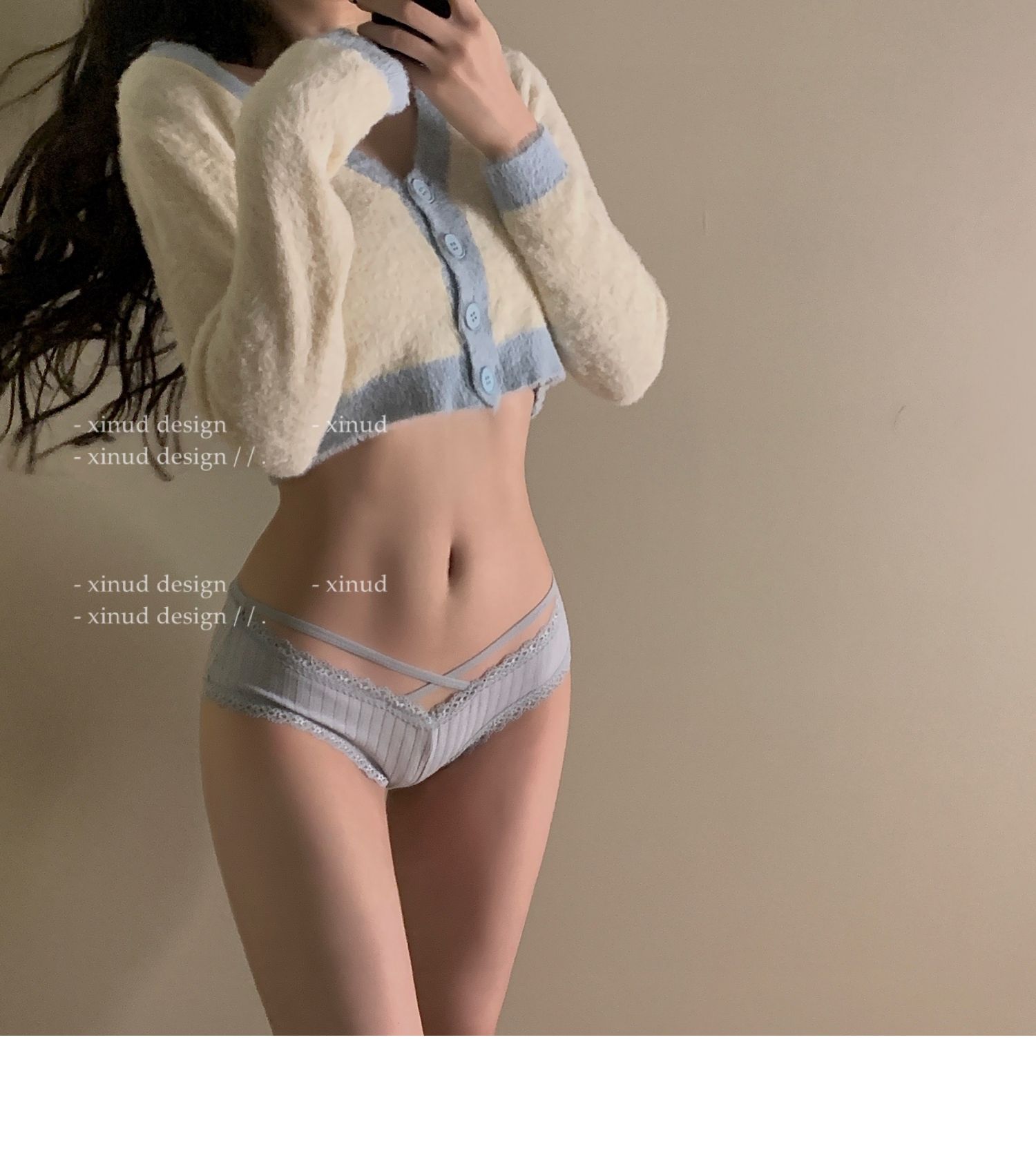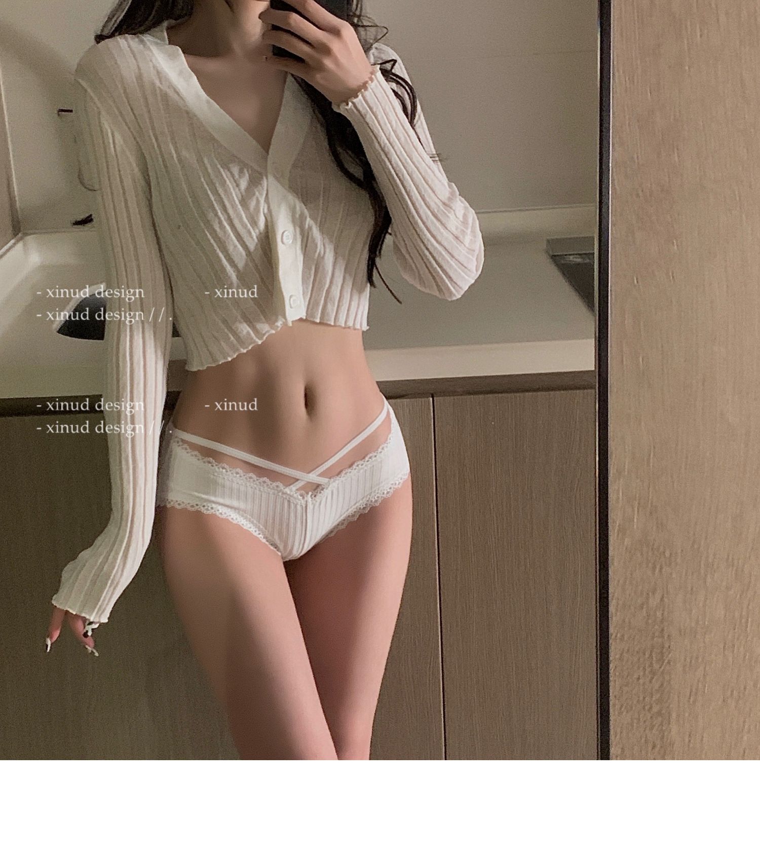 「LA」正經的性感*舒適純棉檔鏤空三角褲交叉蕾絲邊低腰綁帶內褲
