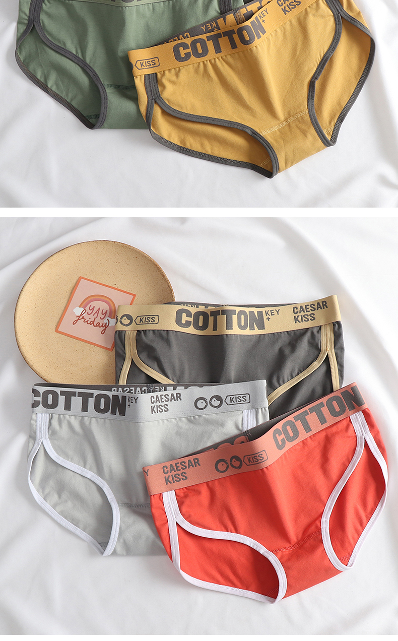 女士內褲純棉女全棉運動三角褲頭中腰寬邊舒適透氣抗菌短褲青年