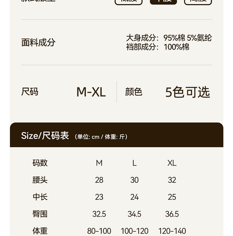 女士內褲女2025夏季新款女生純棉100%全棉襠中腰無痕透氣三角短褲