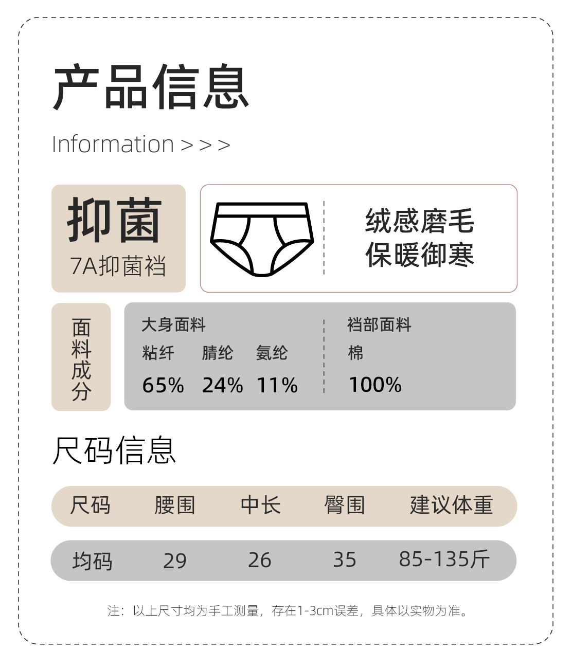 磨毛親膚內褲女士7A抑菌純棉襠中腰無痕羊絨感春秋季款女生三角褲
